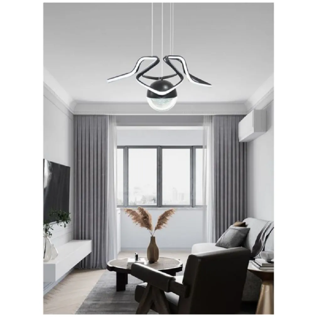 Lampadario a sospensione LED 65W a nastri design moderno colore nero. Design moderno con nastri a illuminazione led integrata sospesi, il paralume centrale può essere regolato in altezza creando giochi di luce unici ed eleganti. Arreda i tuoi spazi con questo elemento di design. Il lampadario è realizzato in lega di alluminio e PVC, leggero e durevole. I materiali e la manifattura di alta qualità rendono il lampadario resistente, bello, elegante e facile da pulire. Il suo sistema a LED diffonde la luce in maniera uniforme e crea un ambiente confortevole. Il suo design unico si adatterà facilmente al tuo arredamento, donandovi un tocco di originale modernità. Perfetto per salone, cucina, open space ed ambienti raffinati. Grazie ai LED a risparmio energetico avrai un’illuminazione maggiore con consumi più bassi.