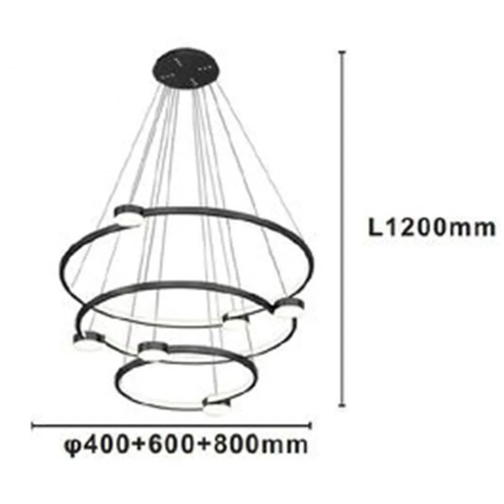 Lampadario a Sospensione LED 96W 3 Cerchi con Telecomando – Design Moderno Nero 71156