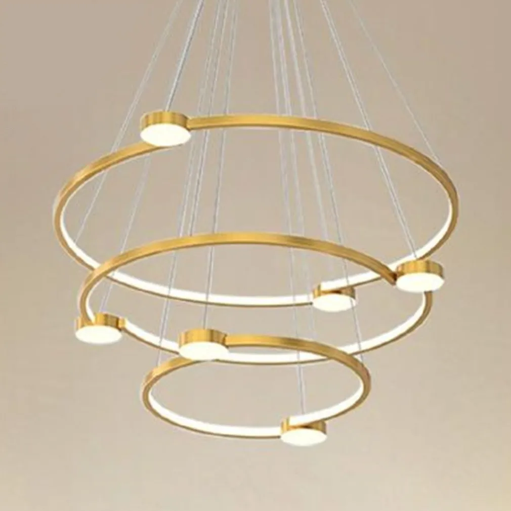 Stai cercando un lampadario che unisca eleganza, funzionalità e tecnologia all’avanguardia? Il nostro Lampadario a sospensione LED 96W 3 cerchi con telecomando è ciò che fa per te! Con il suo design moderno e minimal in color oro, questo lampadario diventerà il punto focale della tua casa, conferendo un tocco di stile unico a qualsiasi ambiente interno. Grazie al telecomando incluso, avrai il controllo totale della tua illuminazione a portata di mano.