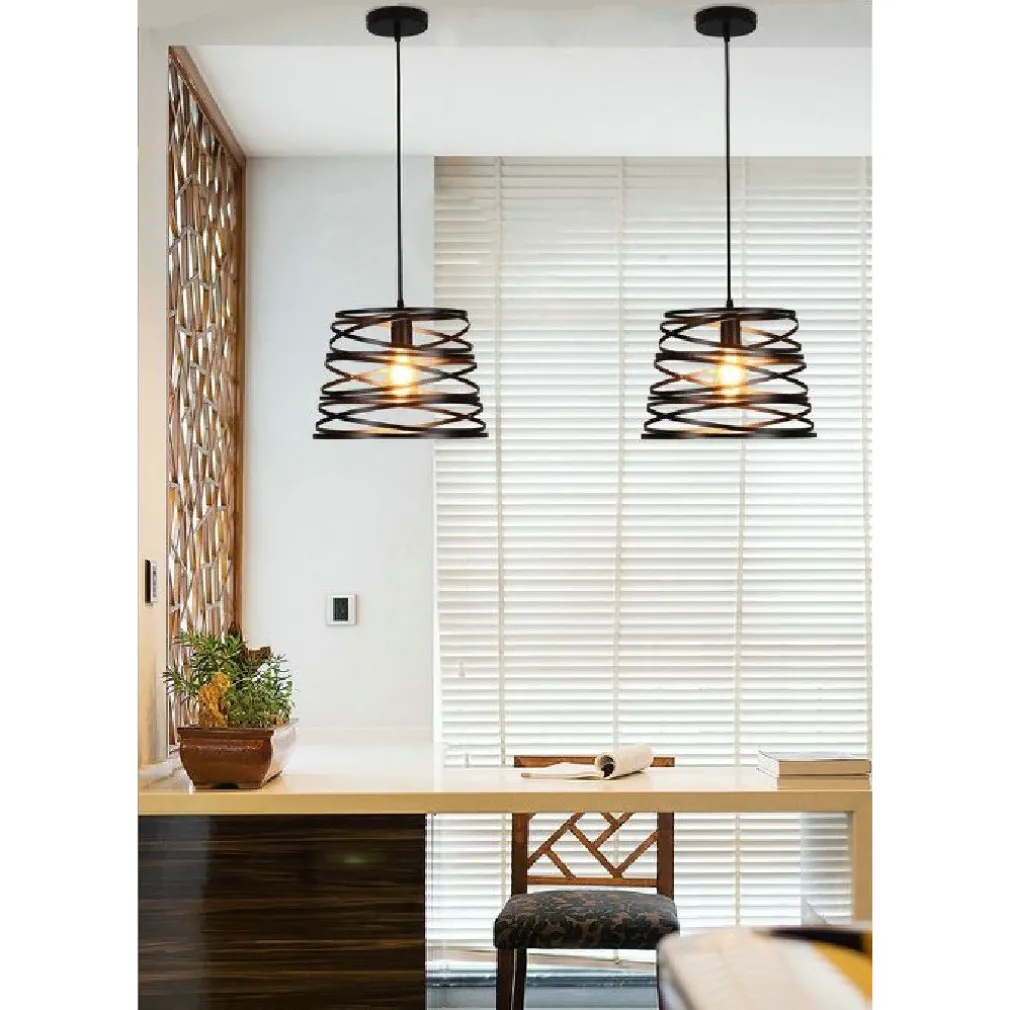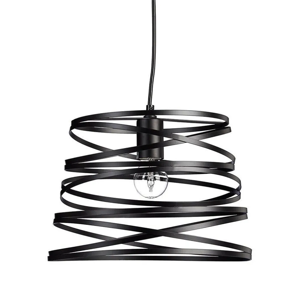 Lampada ultramoderna a sospensione con nastri in metallo che vanno a creare un paralume dall’impatto scenico unico e contemporaneo. Ideale per illuminazione di snack, angoli bar, banconi e cucine. Monta un portalampada con attacco per lampadine E27 max 60w (non inclusa). Composto da nastri in metallo avvolti a vortice che formano un paralume traforato per un emissione di luce a 360°.