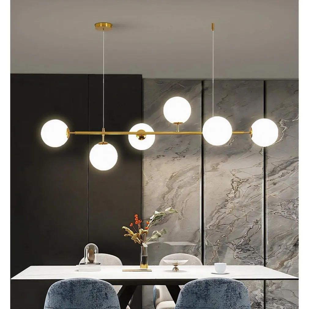 Dove posso installare questo lampadario? Il Lampadario a Sospensione Oro con 6 Sfere Bolle Bianche è perfetto per l’uso interno. Può essere montato in soggiorni, sale da pranzo, camere da letto, corridoi e anche in ambienti più moderni come uffici e open space.
