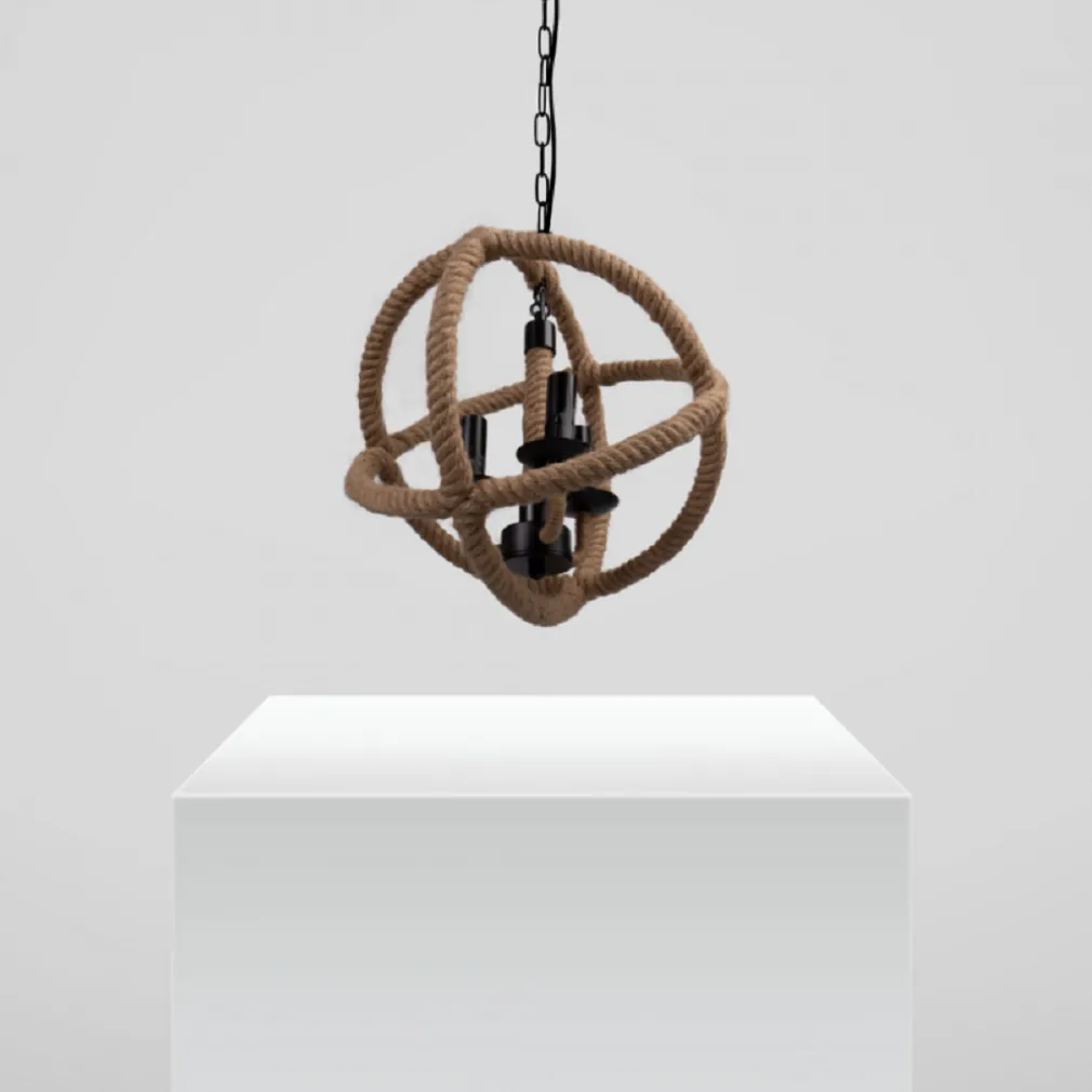 Lampadario a sospensione dal design rustico e industriale con sfera in corda. Realizzato in corda di canapa e metallo, dotato di 3 attacchi E14 (lampadine non incluse). Lampadario a sospensione che unisce il fascino del look rustico e industriale, ideale per arredare in modo moderno la propria casa, perfetto per ambienti come open space, cucine, soggiorni, ma anche per arredare locali come ristoranti, pub, hotel. Realizzato con ispirazione industriale con materiali di alta qualità ispirati alla natura, associati ad una manifattura eccellente, come metallo e corda di canapa, che creano un ambiente confortevole e diffondono un fascino senza tempo. Puoi personalizzare lo stile aggiungendo lampadine con la forma che desideri.