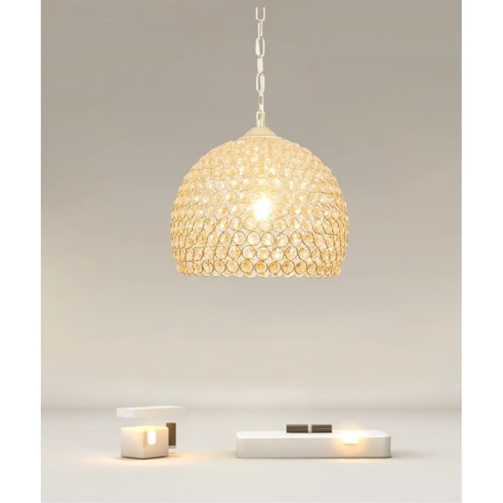Con una struttura impreziosita da cristalli ambra in vetro oro, questo lampadario aggiunge un tocco di lusso a soggiorni, camere da letto, o sale da pranzo. È perfetto per chi desidera combinare funzionalità e stile in un’unica soluzione.