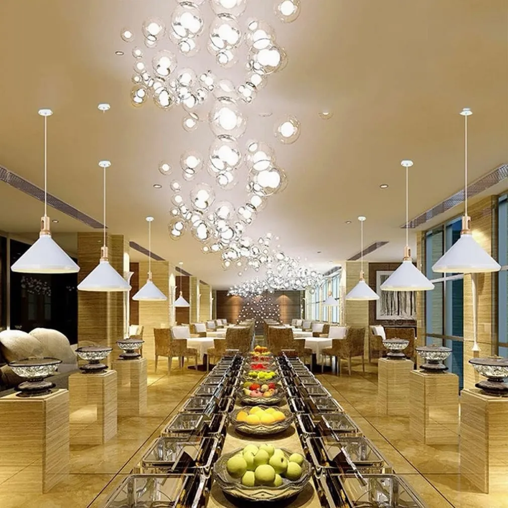 - Il lampadario è adatto per essere installato in cucine, sale da pranzo, isole da cucina, e spazi commerciali come pub e ristoranti.