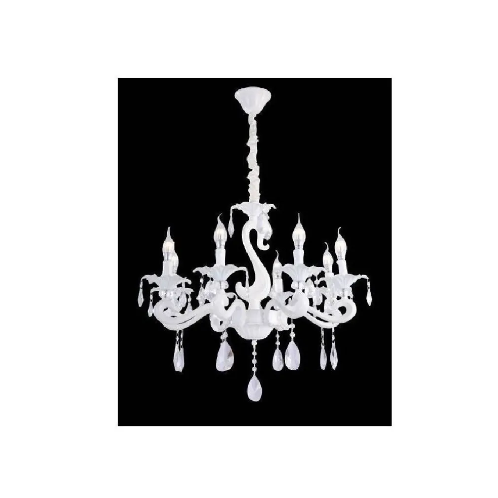 Lampadario da soffitto design classico 8 bracci, attacco 8xE14 (lampadine non incluse), ornamenti a goccia pendenti vetro effetto cristallo, colore bianco. Valorizza il tuo spazio interno con questa lampada da soffitto dal design classico, perfetta per illuminare sale da pranzo, camere da letto, studi. Questa lampada da soffitto è dotata di 8 punti luce. I materiali e la forma la rendono un elemento di arredo funzionale ed elegante.