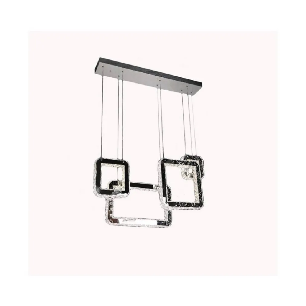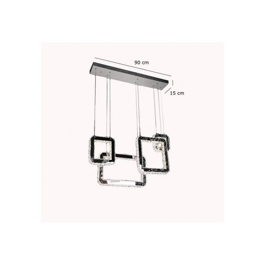 Lampadario moderno a LED dalla forma cubica impreziosito da cristalli trasparenti, perfetto per conferire un tocco di originalità alla tua casa. Composto da 4 pendenti di diverse misure e forme. È possibile regolare la lunghezza delle corde così da creare un gioco di altezze. Lampadario LED decorativo, design moderno, forme a cubo multiple, in acciaio e cristallo per spazi living, a risparmio energetico. Le sue caratteristiche principali sono: lunga durata, alta efficienza luminosa, elevato indice di resa cromatica, buona dissipazione del calore, assenza di sfarfallio, assenza di radiazioni, basso consumo energetico, bassa degradazione della luce. Questo splendido lampadario ha un design classico ed elegante che lo rende perfetto per rendere i tuoi spazi raffinati. Puoi installarlo in sala da pranzo, in soggiorno e in camere ampie. Il cristallo di alta qualità brillante cattura e riflette la luce in modo efficace e offre un magnifico gioco di colori. Con questa magnifica lampada da soffitto potrai arredare la tua casa in modo lussuoso.
