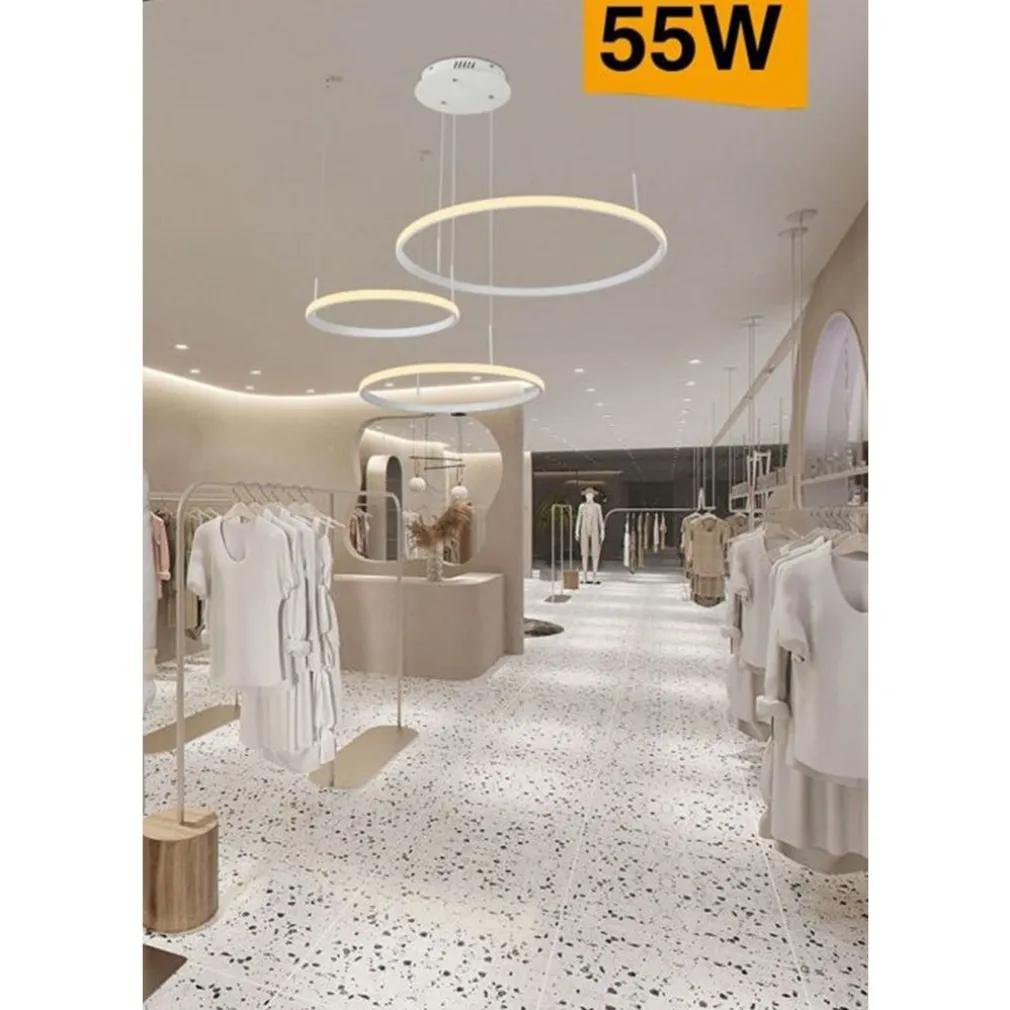 LAMPADARIO LED A SOSPENSIONE 3 ANELLI ASIMMETRICI 55W LUCE 3000K 4000K 6500K A65