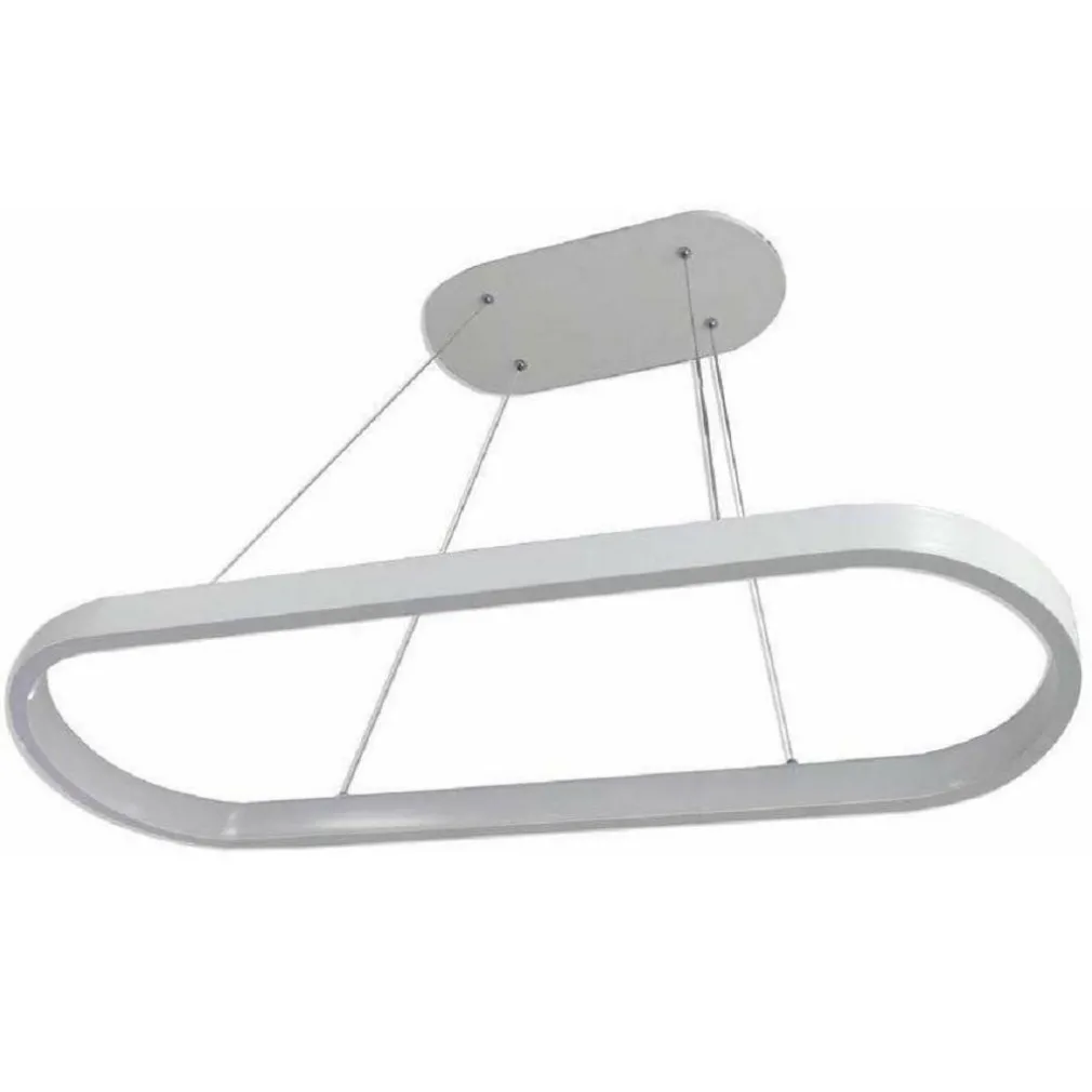 Lampadario sospeso a led dal design moderno e innovativo con forma ovale (90×31 cm) di colore bianco. Grazie al suo design unico si adatterà facilmente al tuo arredamento, dando un tocco di originalità. È possibile regolare la lunghezza della corda così da creare un gioco di altezza.