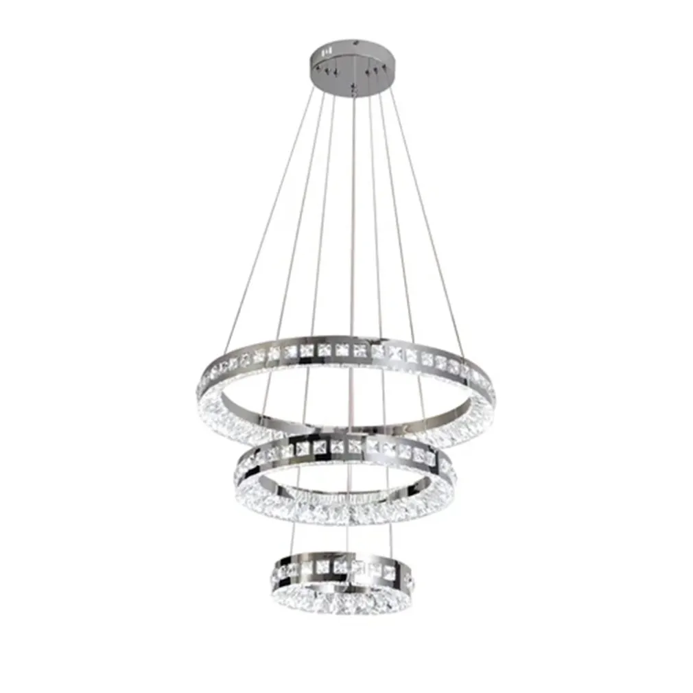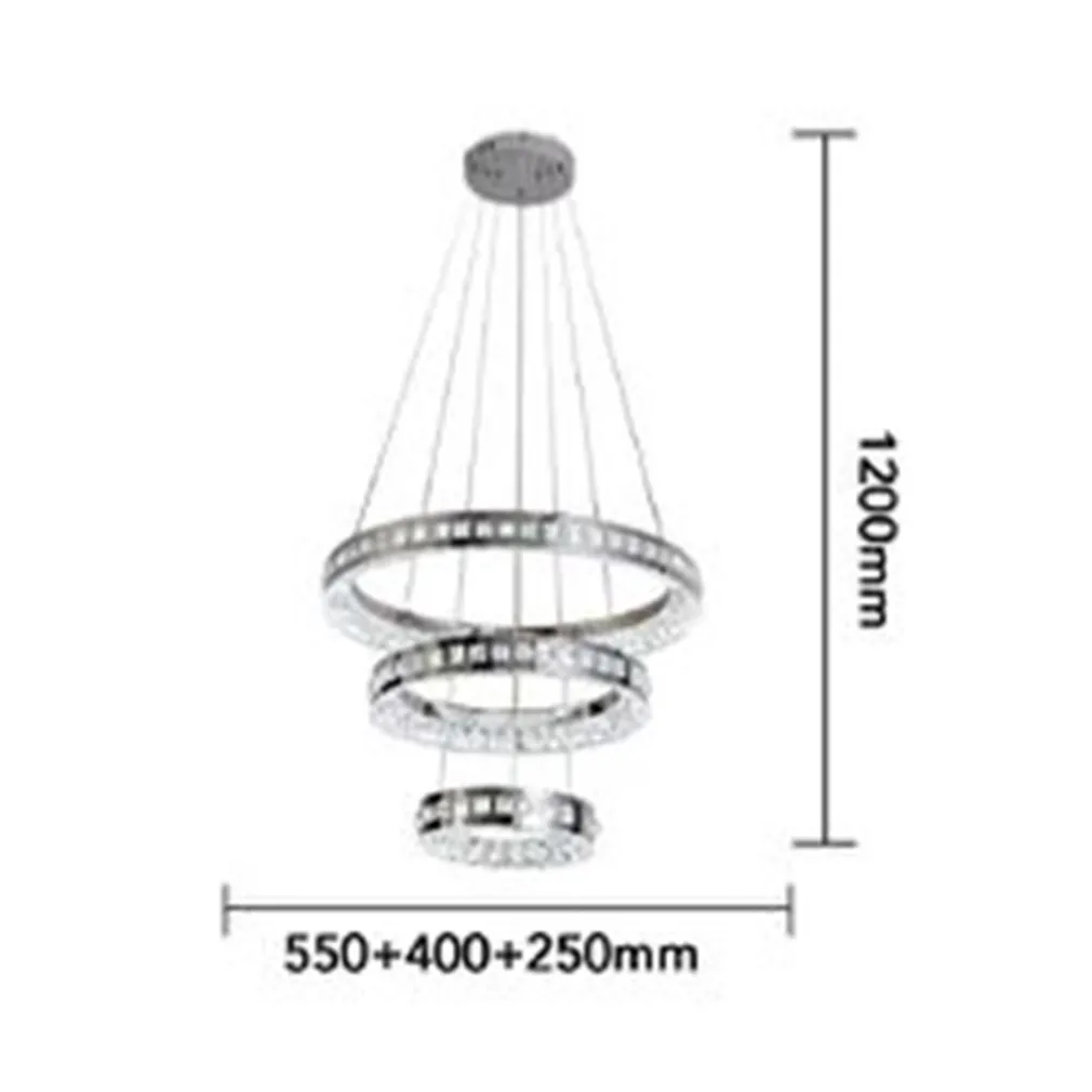 Illumina la tua casa con eleganza e funzionalità: scegli oggi stesso il lampadario LED a sospensione soffitto 46W CCT 3 anelli decorati cristalli acrilico B50-3C e trasforma i tuoi spazi con la luce del design contemporaneo firmata Trade Shop Italia.
