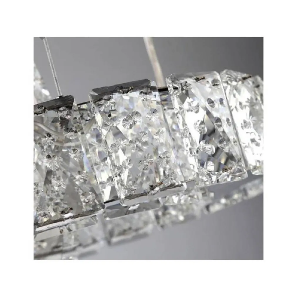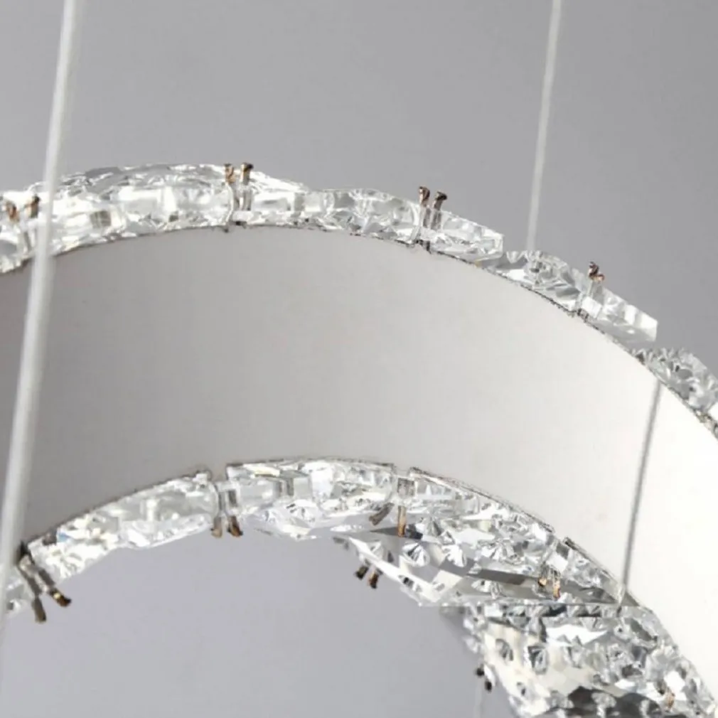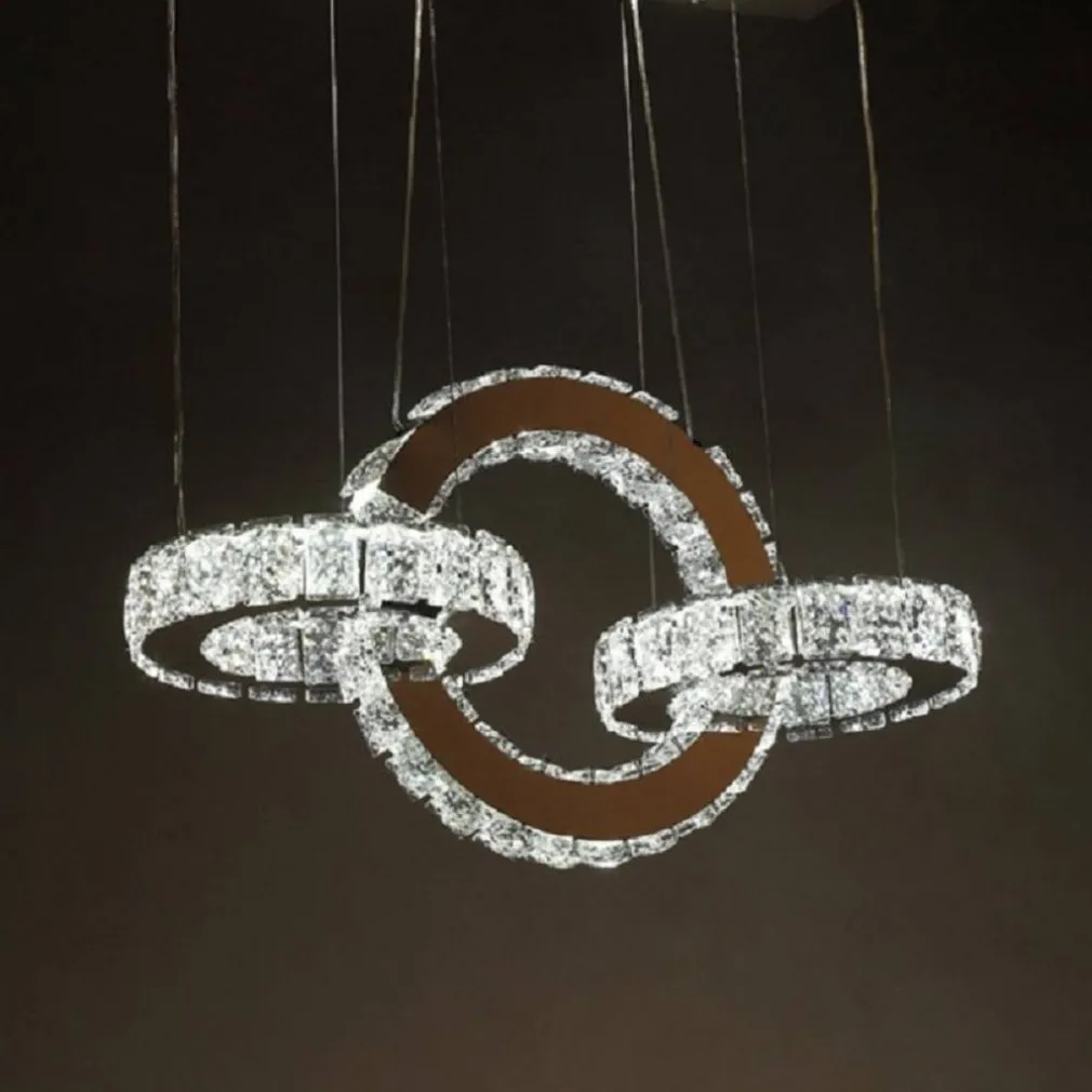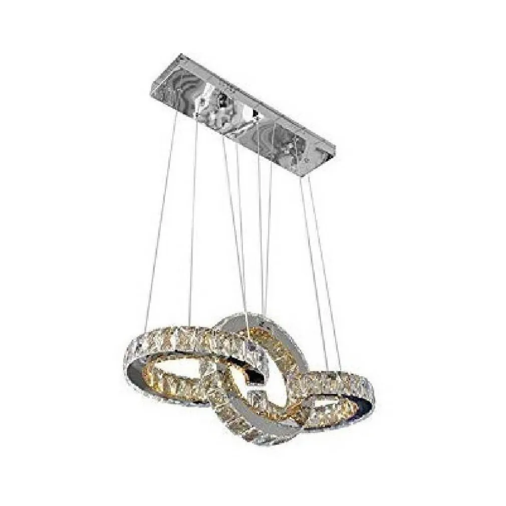 Lampadario LED decorativo, design moderno, cerchi in acciaio e cristallo per spazi living, a risparmio energetico, ideale per arredare con eleganza neoclassica soggiorno, salone, camere, studi, open space. Lampadario moderno a LED con tre cerchi impreziositi da cristalli trasparenti, perfetto per conferire un tocco di originalità alla tua casa. E’ composto da un cerchio e due semicerchi sospesi da fili regolabili in altezza così da creare un gioco di altezze. Le sue caratteristiche principali sono: lunga durata, alta efficienza luminosa, elevato indice di resa cromatica, buona dissipazione del calore, assenza di sfarfallio, assenza di radiazioni, basso consumo energetico, bassa degradazione della luce. Questo splendido lampadario ha un design classico ed elegante che lo rende perfetto per rendere i tuoi spazi raffinati. Puoi installarlo in sala da pranzo, in soggiorno e in camere ampie. Il cristallo di alta qualità brillante cattura e riflette la luce in modo efficace e offre un magnifico gioco di colori. Con questa magnifica lampada da soffitto potrai arredare la tua casa in modo lussuoso.