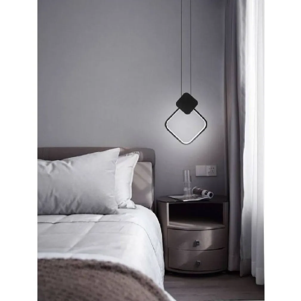 Lampadario a sospensione quadrato 12 watt perfetto come complemento d’arredo per comodini, isola della cucina, snack. Disponibili in tre colorazioni: luce calda 3000k, luce naturale 4000k e luce fredda 6500k. Struttura realizzata in metallo nero.
