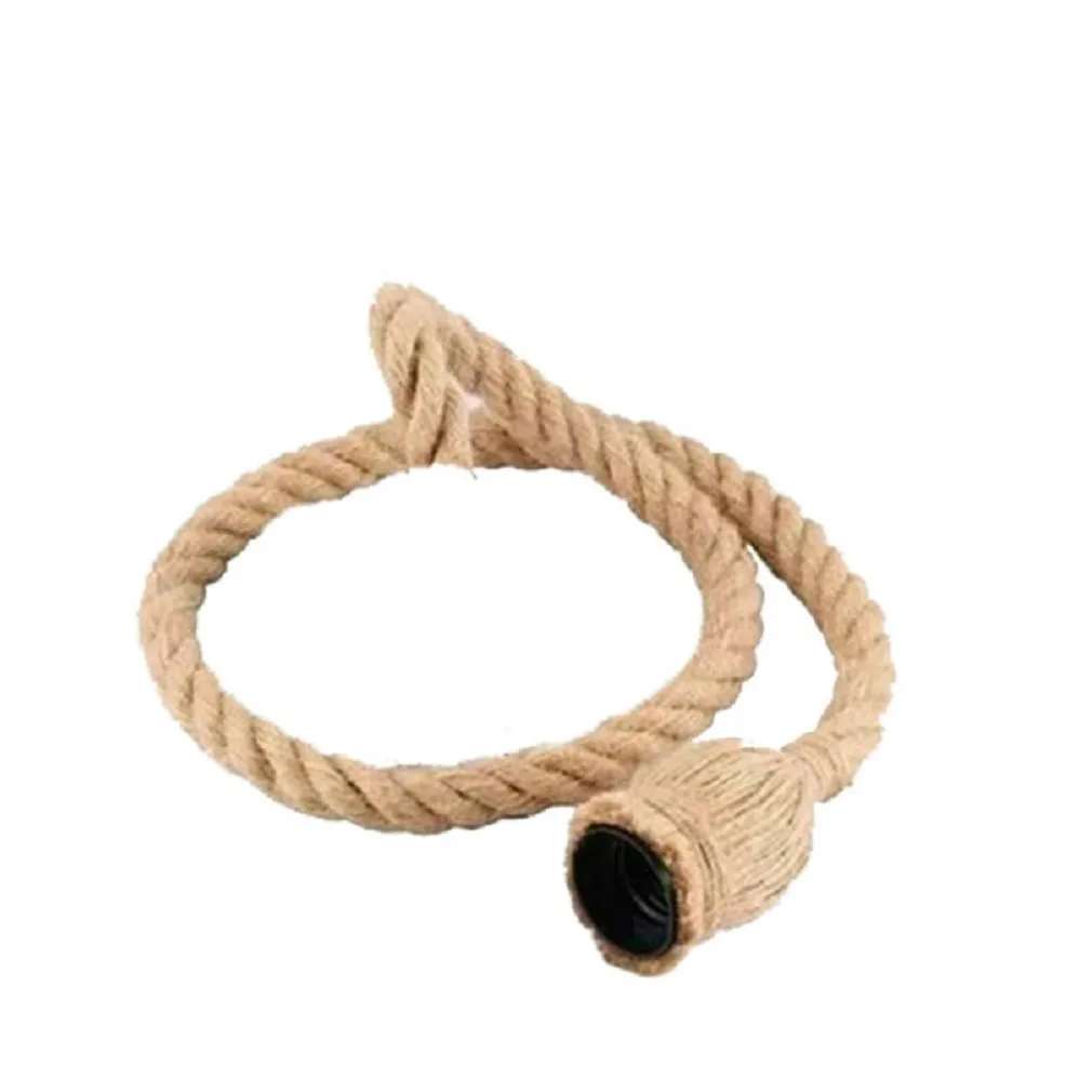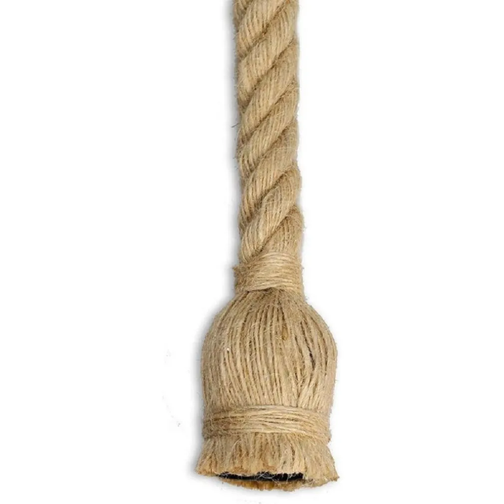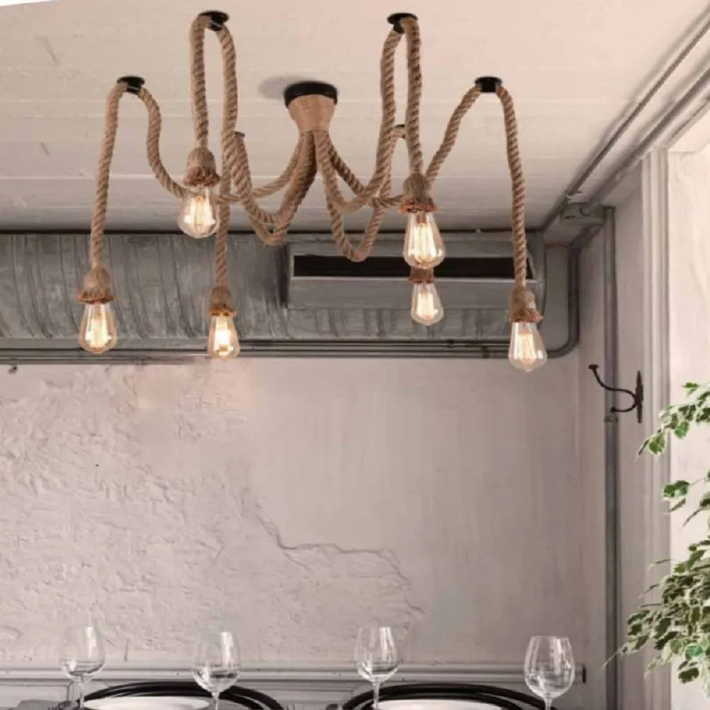 Lampadario a sospensione dal design rustico dotato di 6 corde in canapa naturale, la cui altezza può essere regolata ed adattata alle proprie esigenza. Perfetto per arredare casa con originalità, adatto anche per decorazioni di bar, pub, ristoranti e ovunque si desideri.