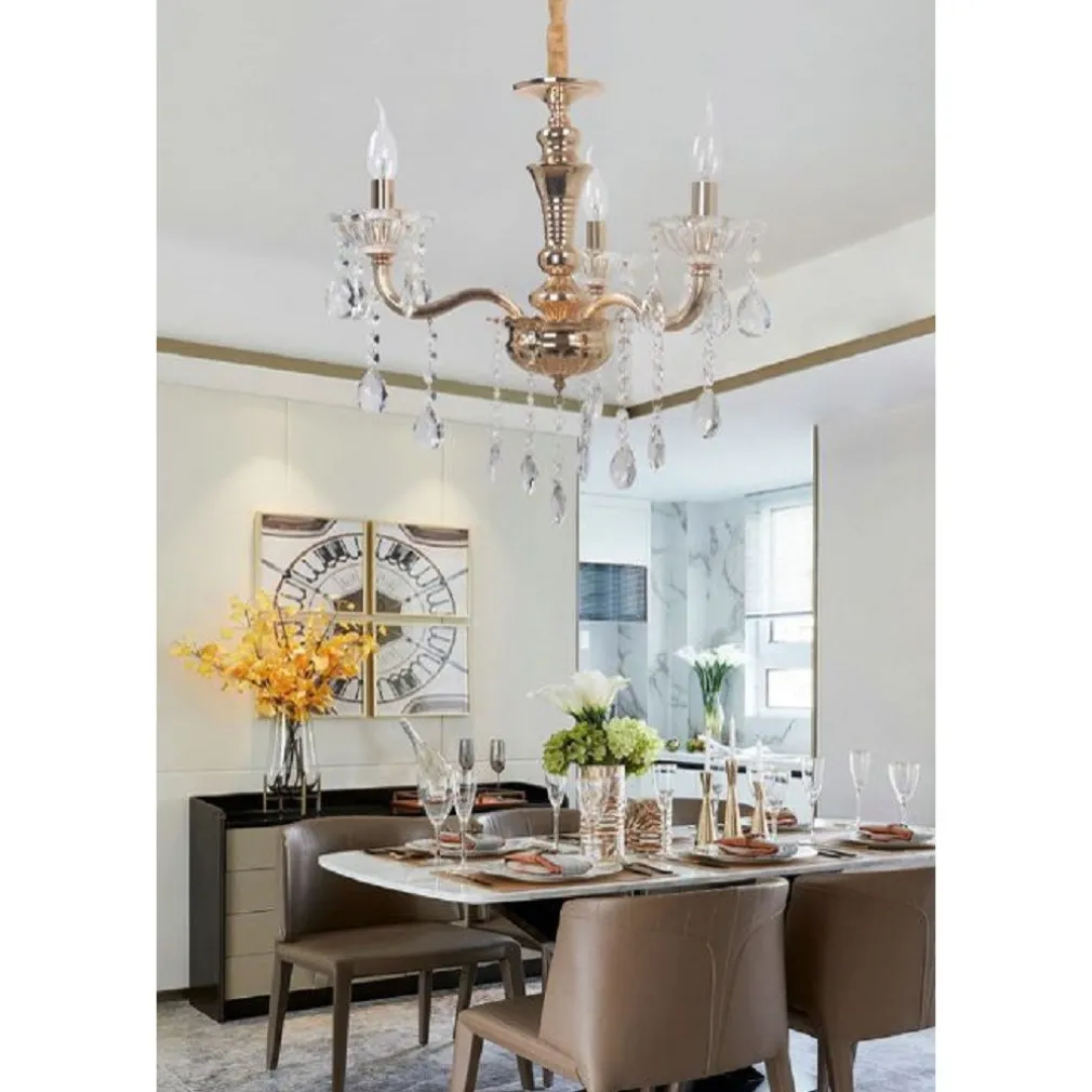 Lampadario da soffitto a 3 braccia impreziosito da gocce pendenti in acrilico che catturano e riflettono la luce offrendo un magnifico gioco di colori. Dotato di tre portalampada con attacco e14 (lampadine non incluse). Grazie al suo design regale, è perfetto per il vostro ingresso, sala da pranzo, soggiorno e altro ancora. Disponibile in due diverse colorazioni, oro o argento.