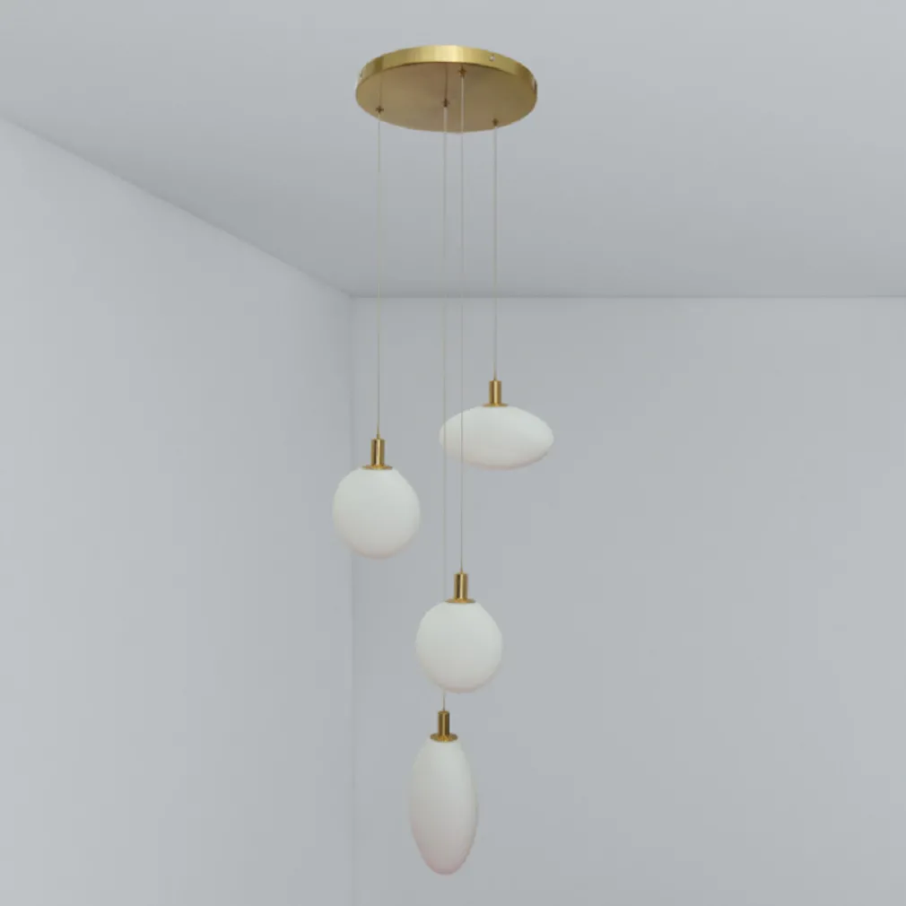 Lampadario a sospensione dal design moderno con illuminazione a cascata, elegante e prezioso grazie al corpo in color oro cromato, le forme asimmetriche dei paralumi in vetro lo rendono un elemento di design perfetto per illuminare saloni, sale da pranzo, open space, come discesa su tavoli da pranzo, Il lampadario è dotato di quattro portalampada in vetro opaco con attacco G9. Lampadario a sospensione dalle linee morbide, realizzato con vari elementi pendenti dalla forma diversa con paralume in vetro. Corpo realizzato in ferro cromato colore oro e vetro. Grazie al cavo regolabile è possibile installarlo all’altezza che si preferisce, facile da installare grazie al kit di montaggio incluso.
