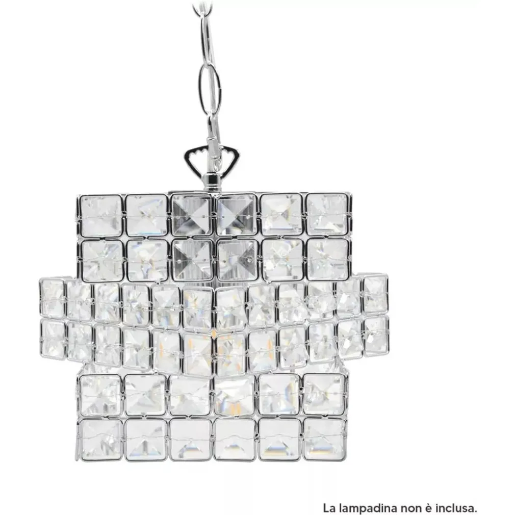 Lampadario Sospeso Cubo Intrecciato con Cristalli – Lampada Luce E27 Argento 32408
