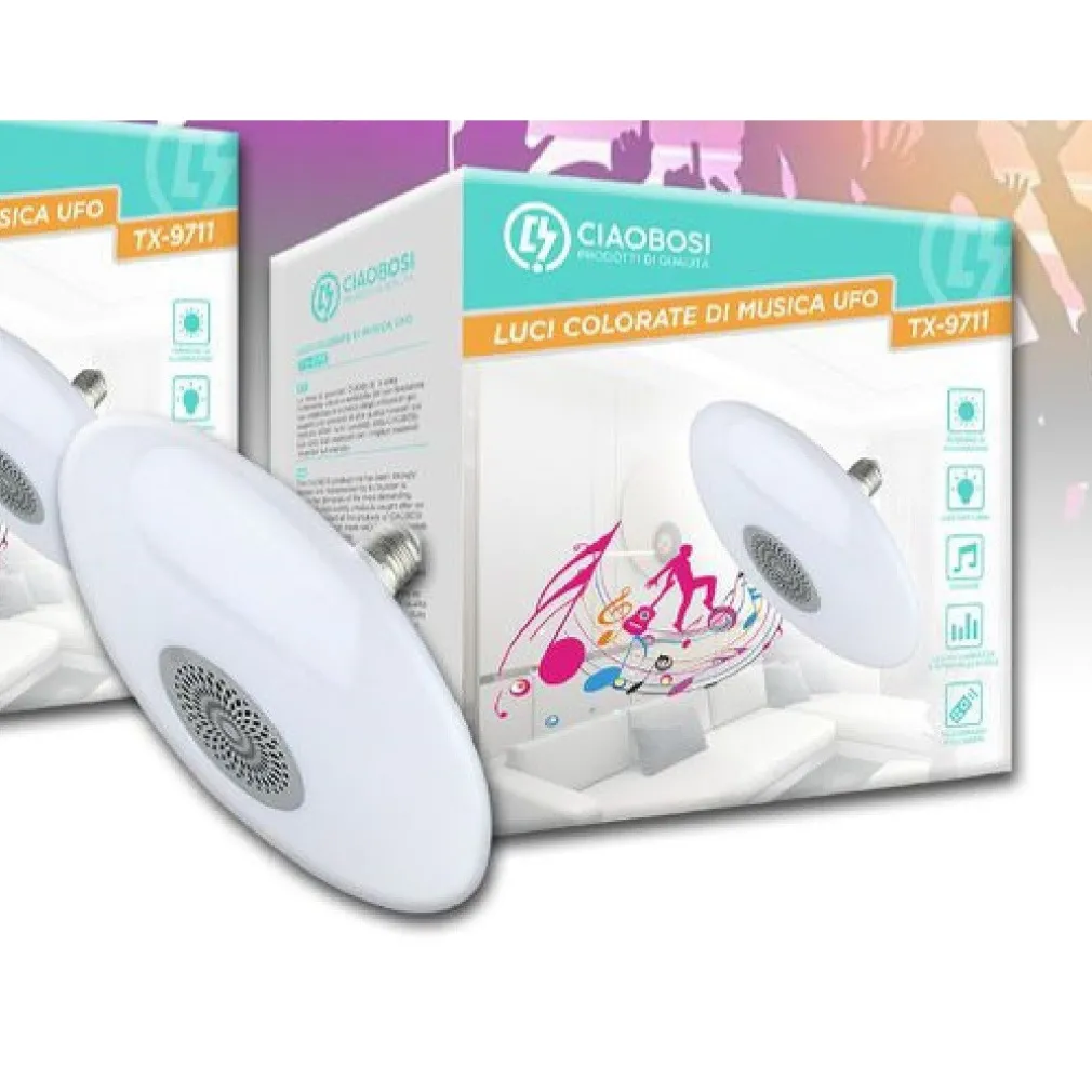 Luce musicale Bluetooth + telecomando. Un modello molto interessante, l’altoparlante-lampadina, ha l’aspetto di un disco volante. Ideale per tutte le stanze in cui soggiornate. Con l’aiuto del telecomando, puoi regolare la luce e il volume. Connessione Bluetooth, facile da installare e utilizzare.Facile connessione bluetooth con il tuo telefono smartphone.