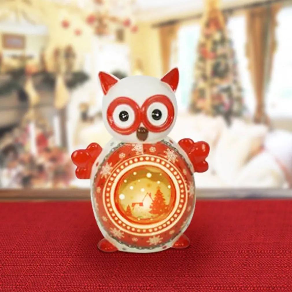 - 1 x LANTERNA CERAMICA GUFO CON CANDELA ELETTRICA 14 CM DECORAZIONI NATALIZIE