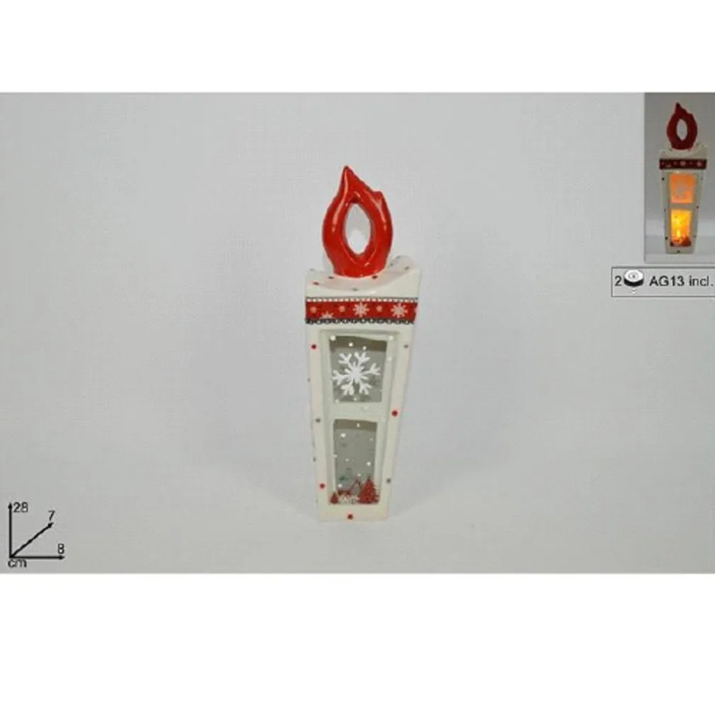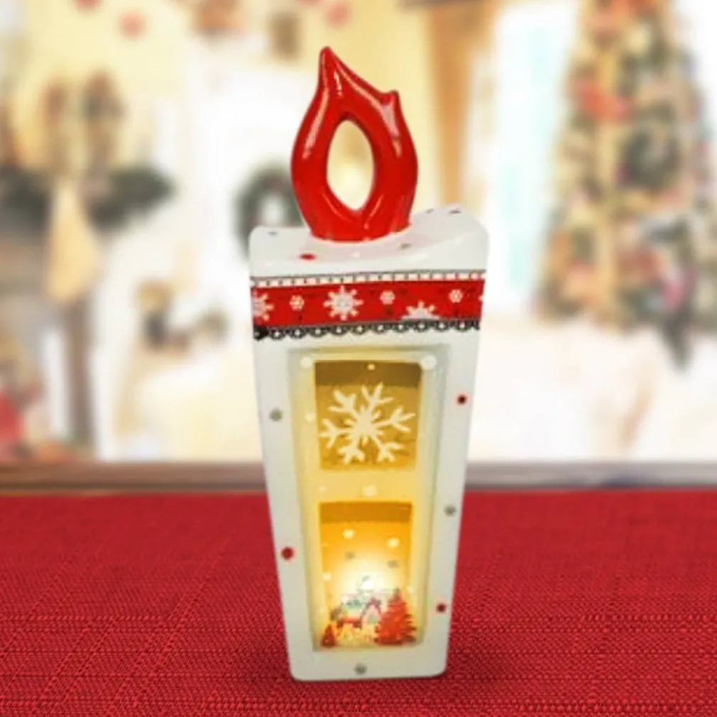 Realizza una meravigliosa e calda atmosfera natalizia con questa bellissima lanterna a forma di candela con scenario. Realizzata interamente in ceramica con al centro un vetro con una piccola scenografia natalizia, che viene illuminata dalla candela a pile posizionata all’interno della lanterna.