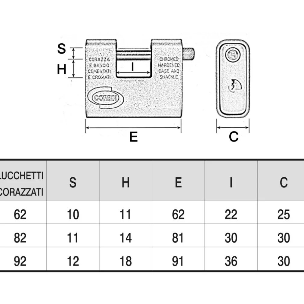 Lucchetto Corazzato in Acciaio Corbin MM 60 / 80 / 90 – Massima Sicurezza per la Tua Tranquillità