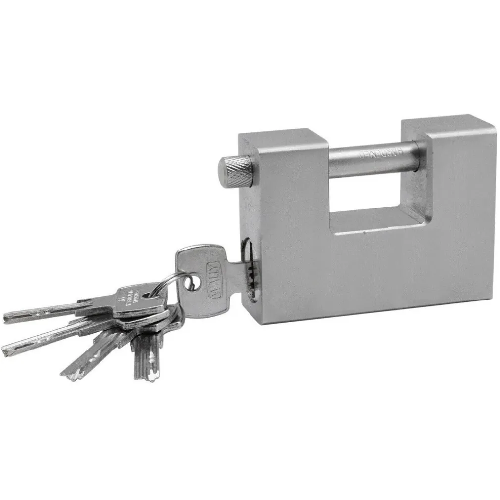 LUCCHETTO CORAZZATO IN ACCIAIO TEMPRATO ANTISCASSO CATENACCIO PER SERRANDE 84MM