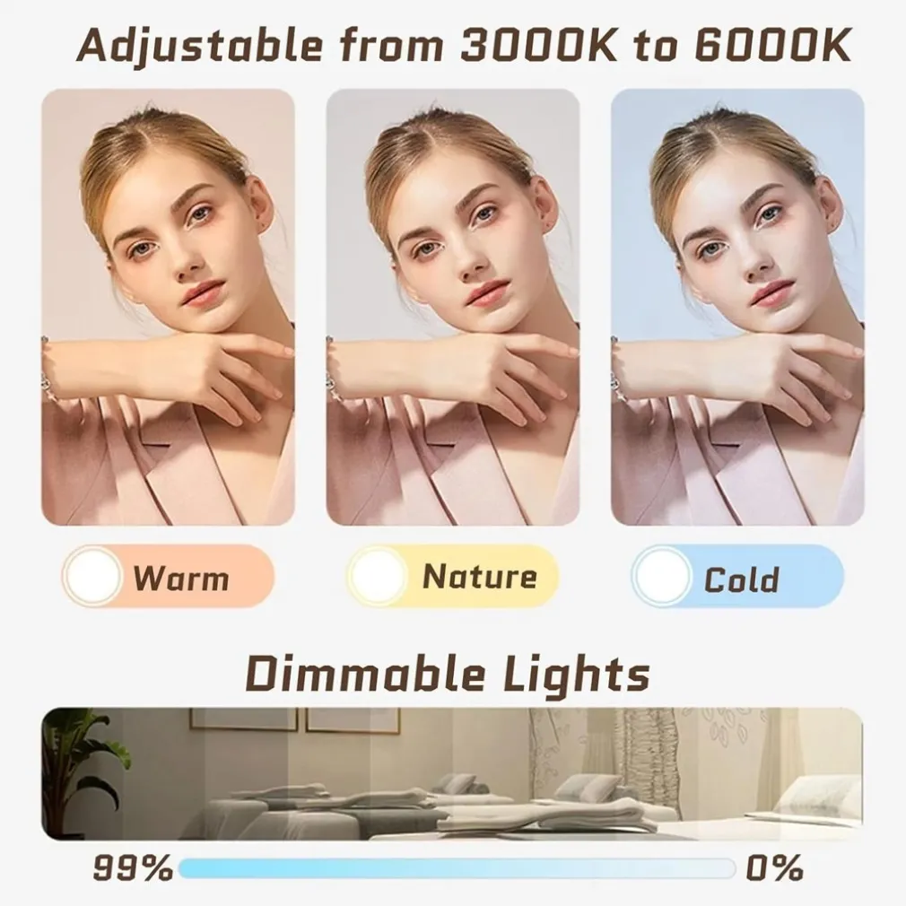 La nostra lampada da scrivania a mezzaluna è progettata per offrire un’illuminazione ottimale senza ombre fastidiose. Con un angolo di illuminazione a 180° a tutto tondo, potete dire addio agli abbagliamenti e alle luci disturbanti. Grazie alle sue 3 temperature di colore regolabili da 3000K a 6500K e alla possibilità di regolare la luminosità dallo 0% al 100%, potete creare l’ambiente perfetto per svolgere le vostre attività di bellezza con precisione e comfort.
