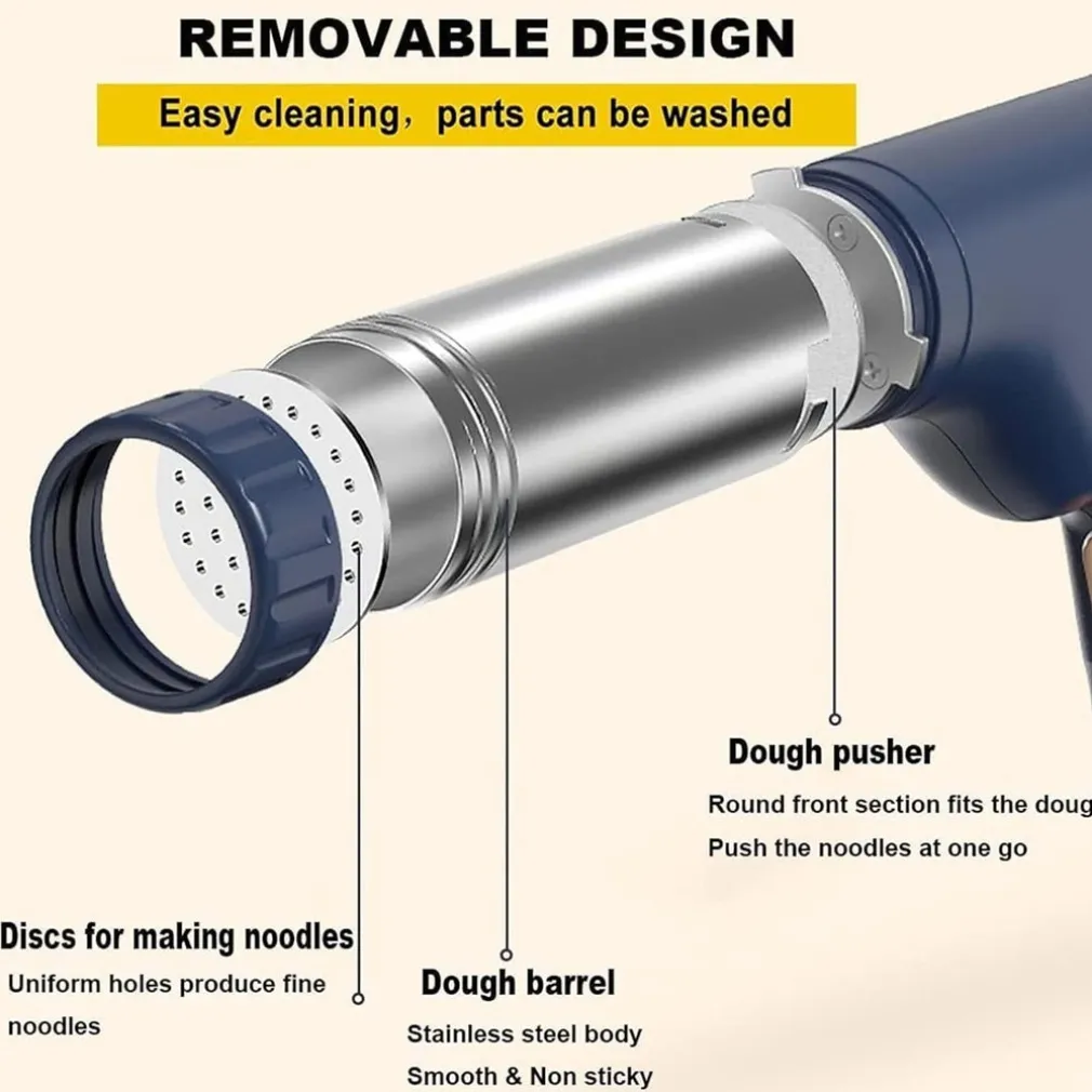 La nostra macchina per pasta elettrica wireless è una rivoluzione nella preparazione della pasta domestica. Con tre stampi intercambiabili, puoi creare tagliatelle spesse, tagliatelle sottili e tagliatelle larghe, offrendoti una vasta gamma di opzioni per personalizzare la tua esperienza culinaria. Realizzata in resistente acciaio inossidabile per uso alimentare, garantisce sicurezza e durabilità mentre prepari i tuoi deliziosi piatti di pasta.