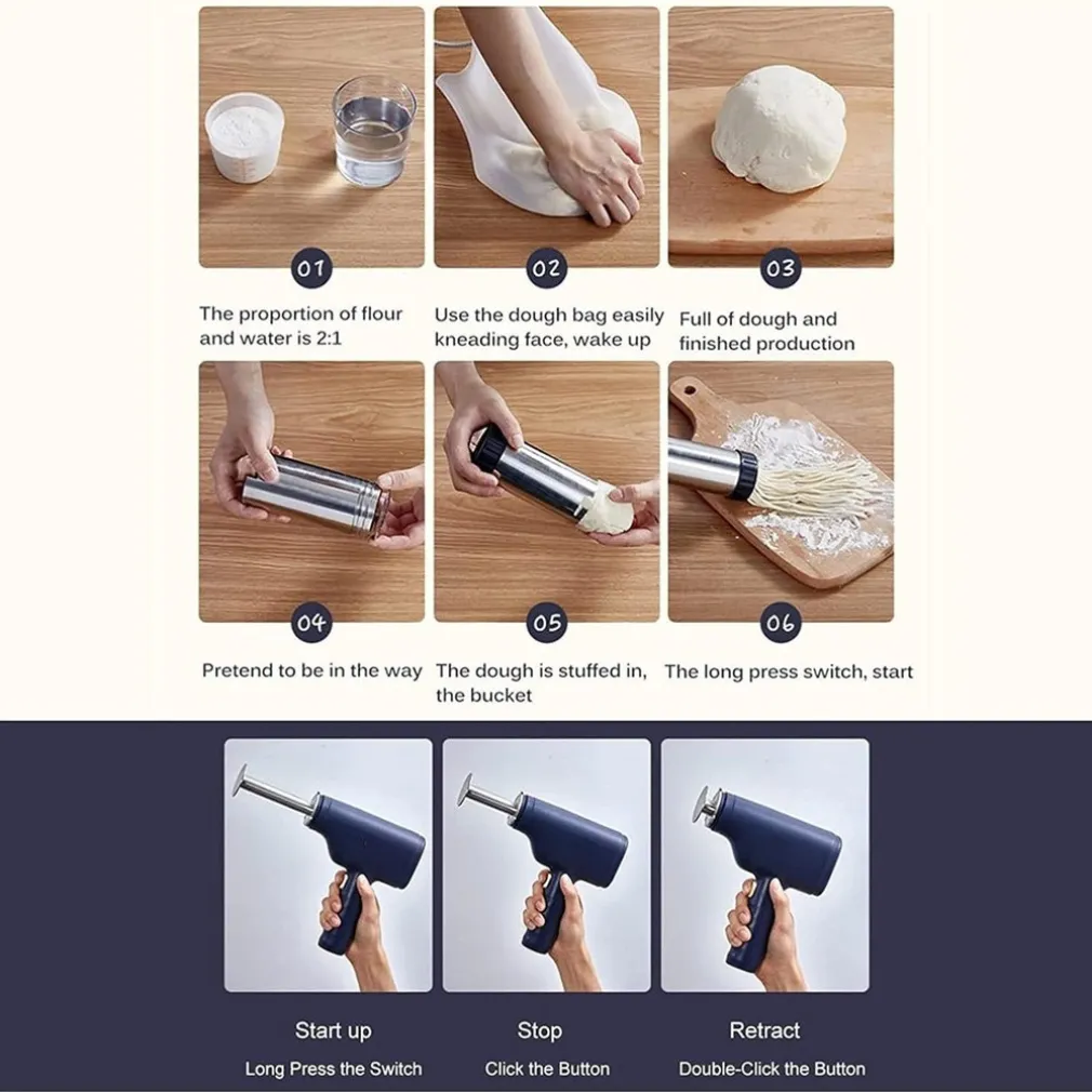 Benvenuti nel mondo della pasta fresca fatta in casa con la nostra ultima innovazione: la Macchina per Pasta Elettrica Wireless. Immagina di poter creare deliziose tagliatelle, spaghetti e noodles freschi con facilità e velocità, direttamente nella tua cucina. È ora di dire addio alla noia della preparazione manuale e accogliere la convenienza di questa macchina portatile, che ti permette di soddisfare le tue voglie di pasta in qualsiasi momento, ovunque tu sia.