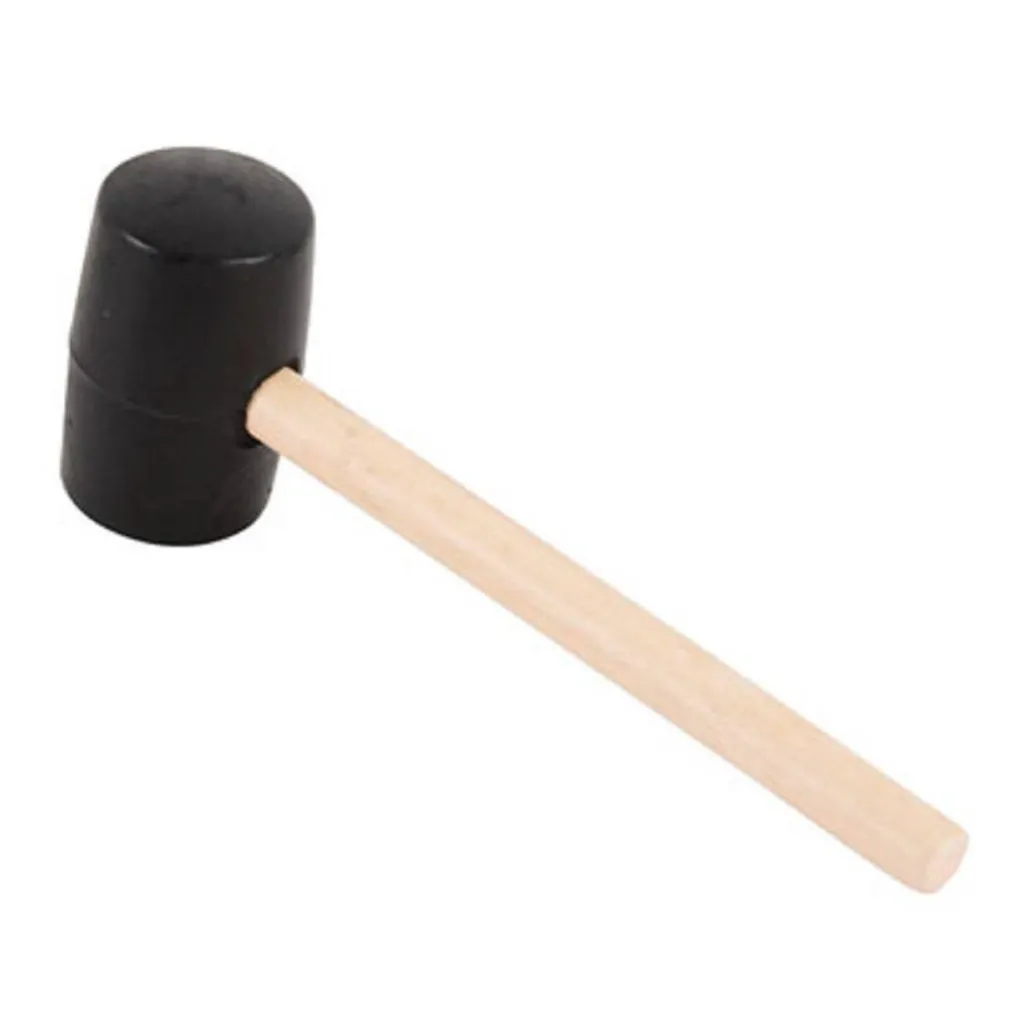 Martello in gomma con manico in legno dal peso di 750 grammi.