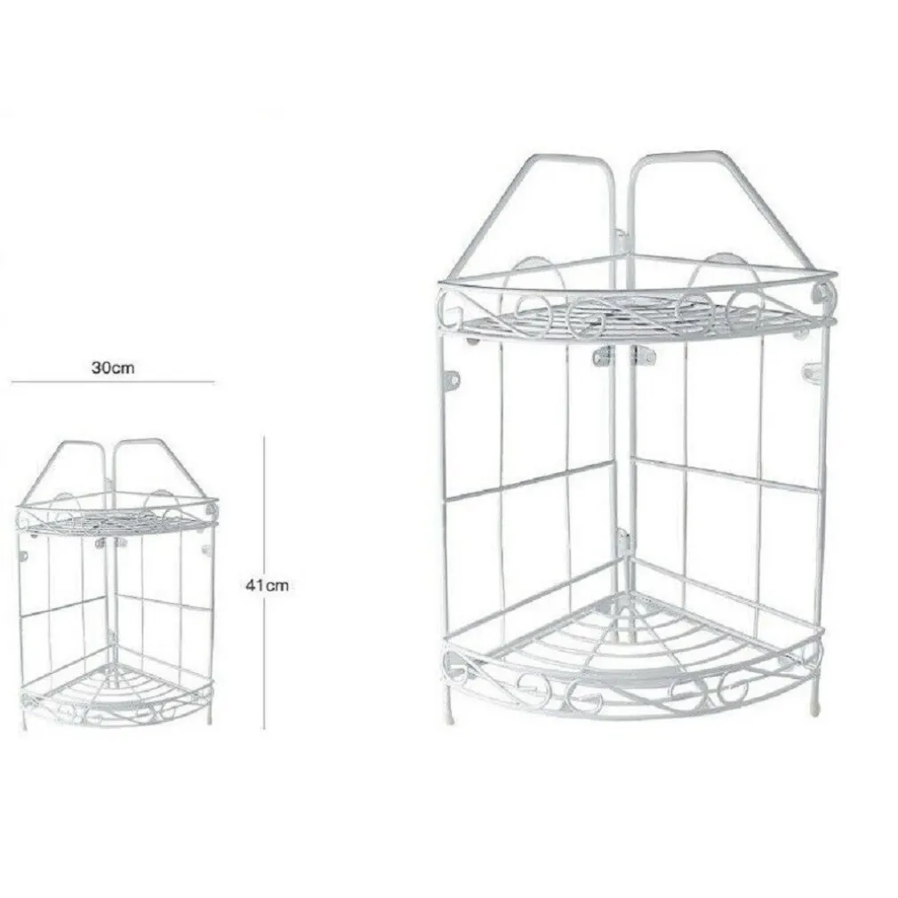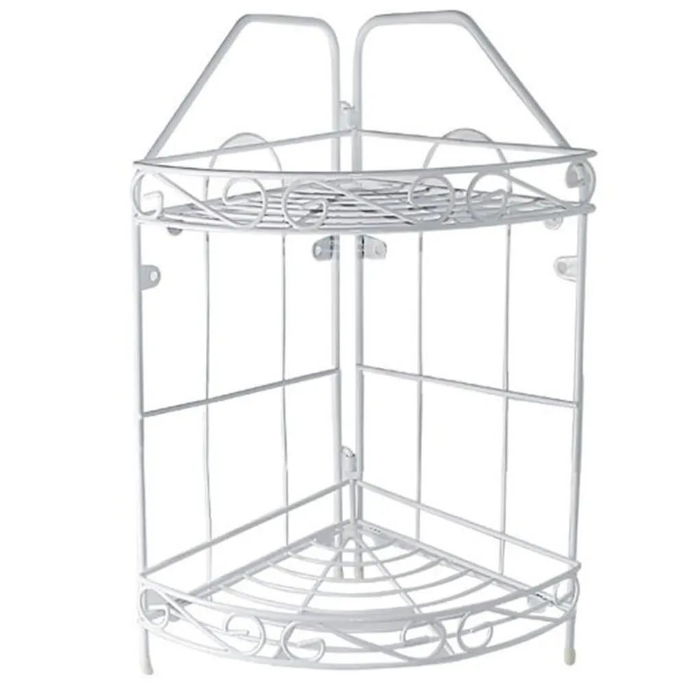 Mensola Angoliera 2 Ripiani Porta Oggetti Bagno Metallo Bianco.