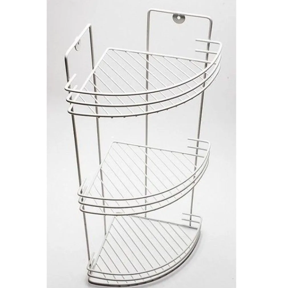 Mensola da bagno angolare a 3 livelli ripiani metallo bianca 59x22x22cm