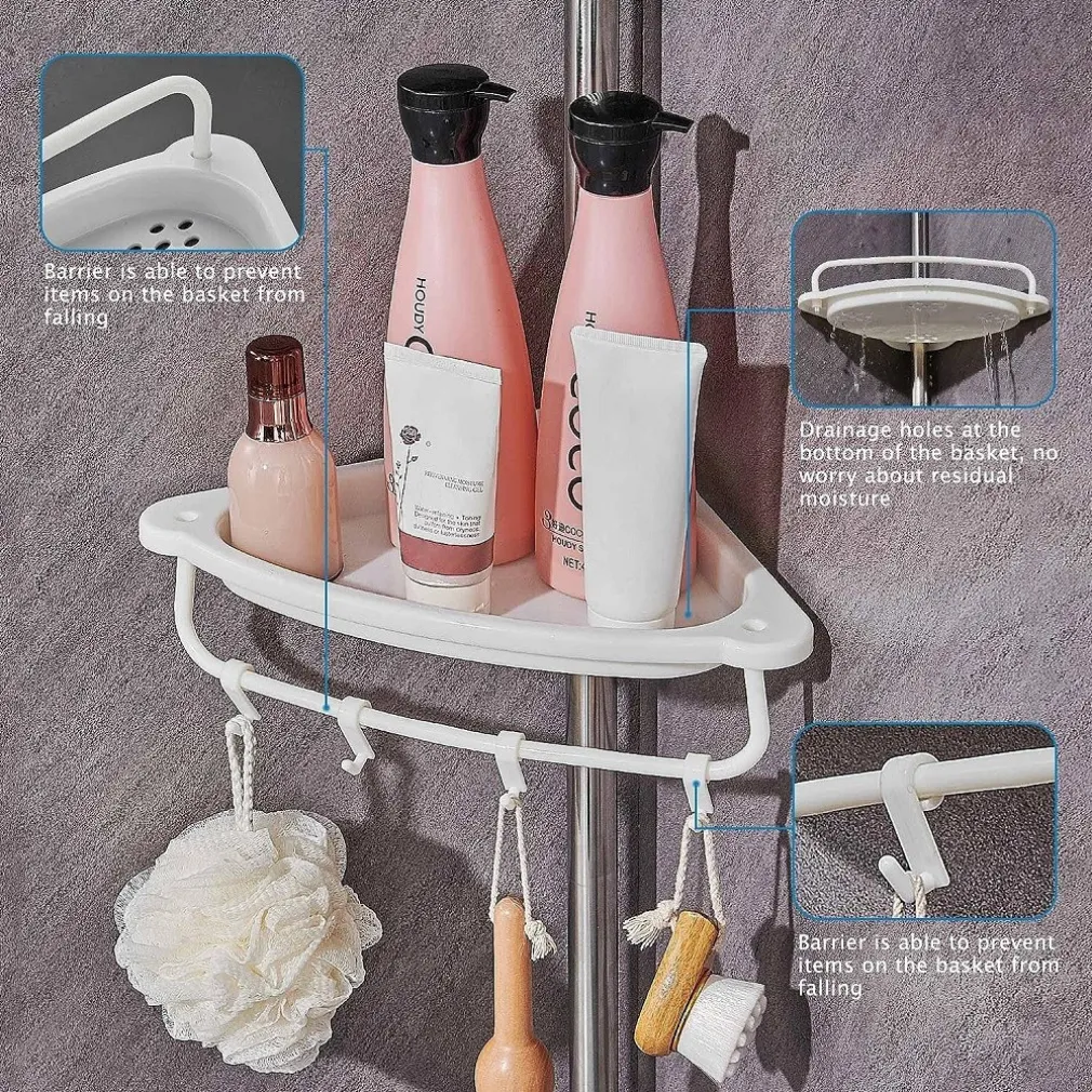 - L’asta regolabile in altezza è realizzata in acciaio inossidabile, è una soluzione di conservazione a lungo termine per il tuo bagno; I cestini doccia e il portasciugamani sono realizzati in PP (plastica) ad alto spessore, che garantisce una grande resilienza.