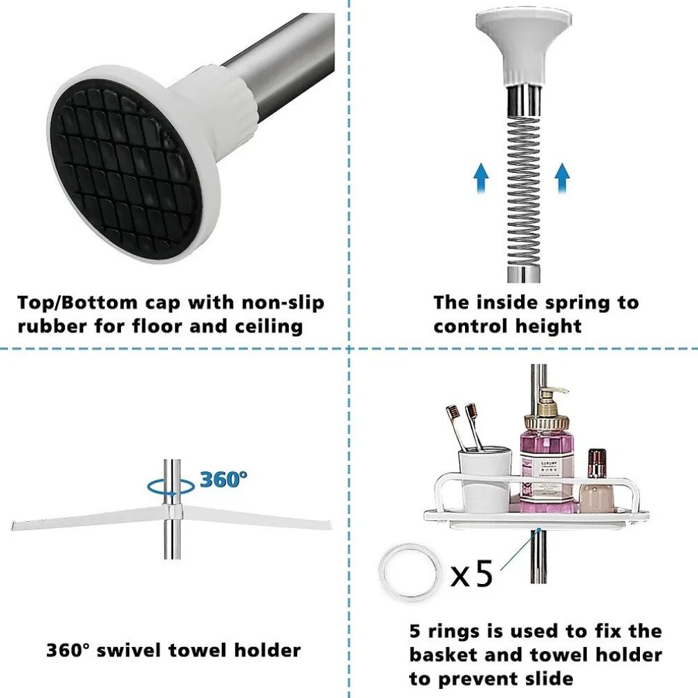 - La mensola doccia decorativa di è regolabile in altezza da 95 a 305 cm grazie all’asta in acciaio inossidabile, puoi regolare l’altezza in base alle tue esigenze; Può essere utilizzato universalmente nella vasca da bagno e nella doccia.