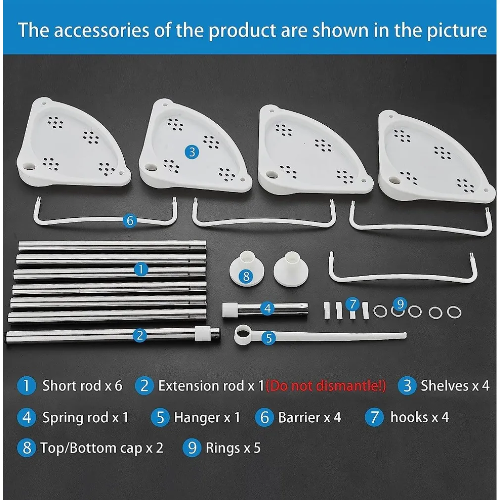 - 4 cesti doccia per riporre gel doccia, sapone, detergente viso, lozione per il corpo, coppetta per i denti; 1 portasciugamani per appendere gli asciugamani; 4 ganci per appendere spugne, spazzole, ecc. Pertanto, rende il nostro bagno pulito e ordinato.