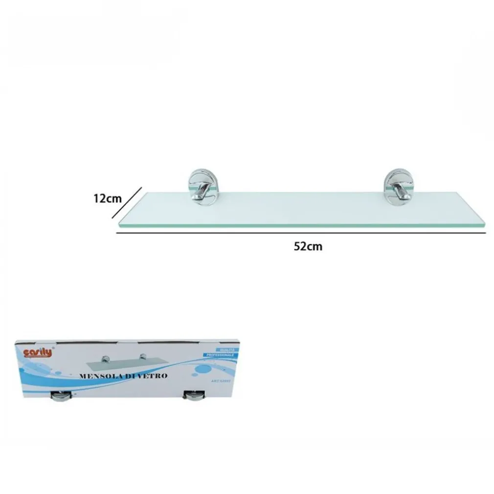 MENSOLA IN VETRO BAGNO CON REGGIMENSOLA ACCIAIO CROMATO FISSAGGIO A PARETE 52002