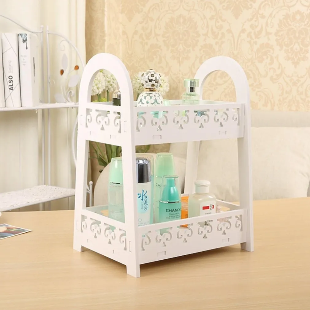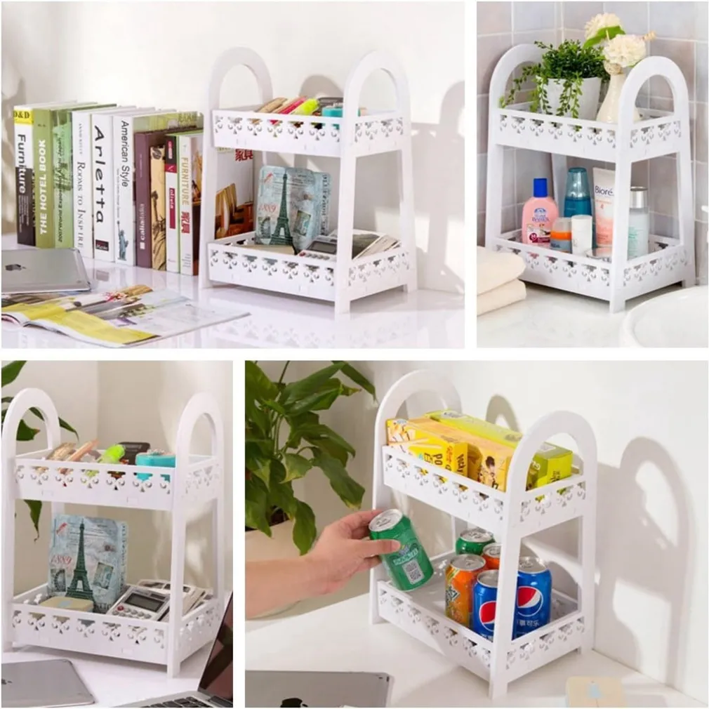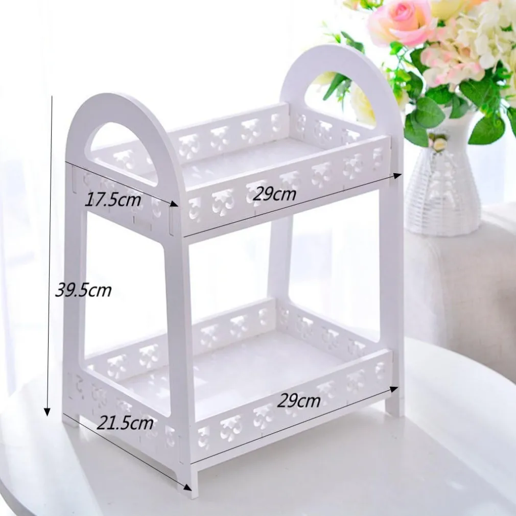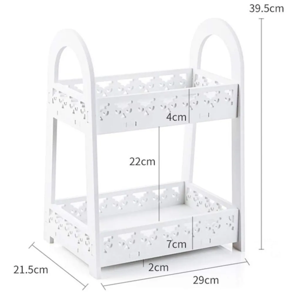 Puoi usarla per cosmetici, articoli da cancelleria, piccoli elettrodomestici, spezie, saponi, asciugamani, libri e tanto altro. La struttura a doppio ripiano garantisce spazio e accessibilità.