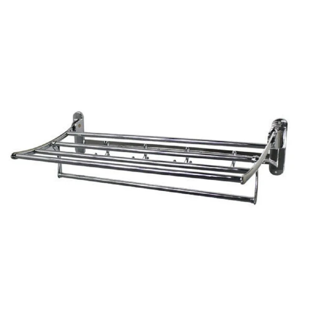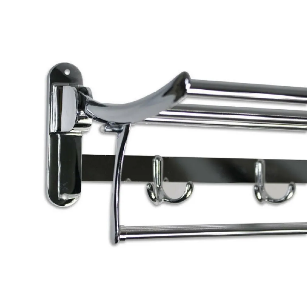Mensola portasciugamani moderno in acciaio con doppio ripiano per asciugami da bagno e salviette. Dotato di 4 ganci perfetti per appendere gli accappatoi. Fissaggio con viti incluse nella confezione.