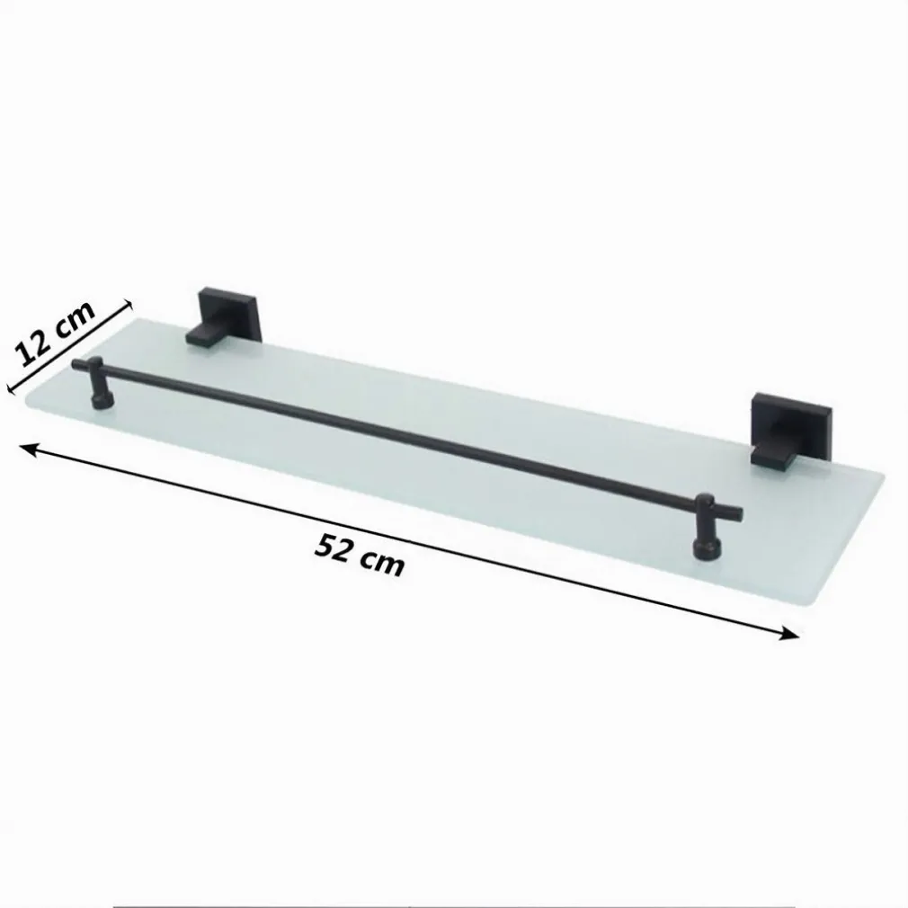 La nostra mensola è realizzata in vetro satinato di alta qualità e dotata di una barra in alluminio nero per impedire agli oggetti di cadere. Il design elegante si adatta a qualsiasi arredamento del bagno.