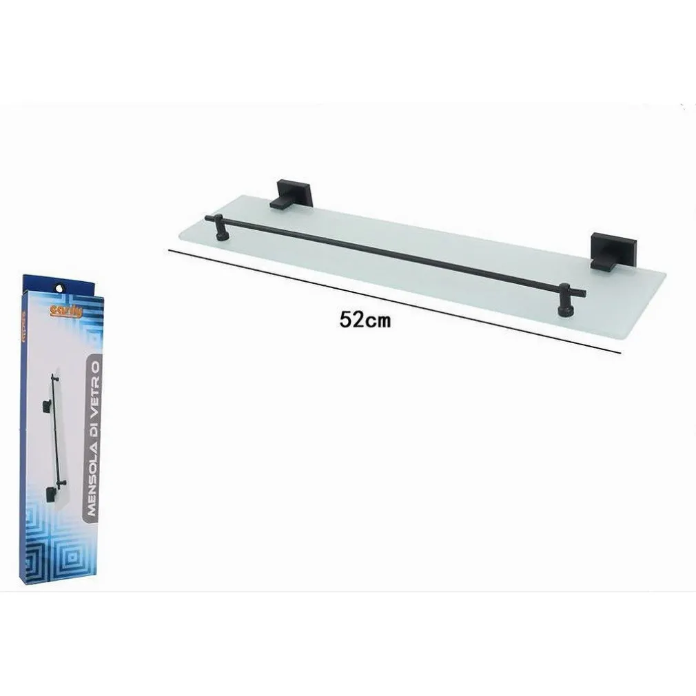 Mensola Vetro Satinato Bagno con Reggimensola Acciaio Nero | Trade Shop Italia