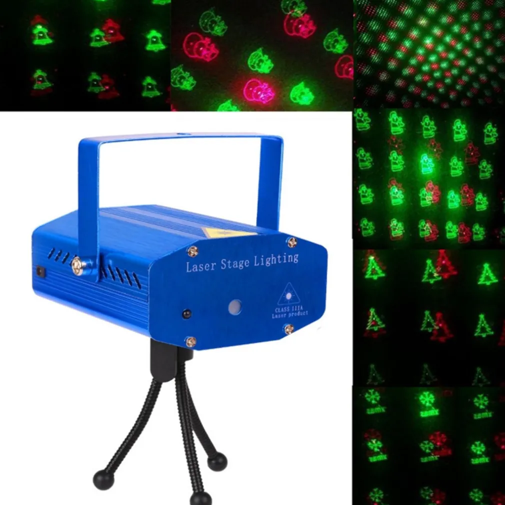 MINI PROIETTORE DA INTERNO 6IN1 N natale LUCE LUCI PER DISCO DISCOTECA PORTATILE MINI DJ VERDE ROSSO ILLUMINAZIONE NATALIZIO