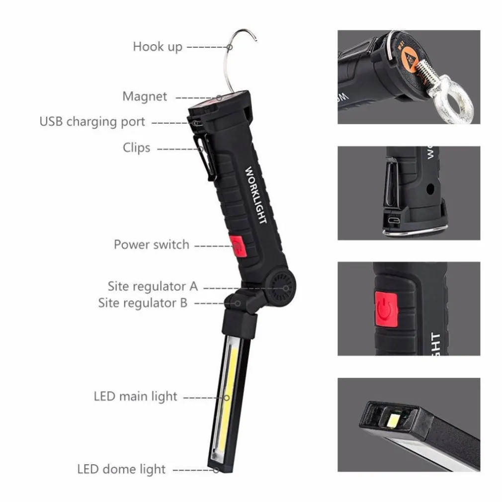 MINI LAMPADA TORCIA LAVORO CALAMITA PORTATILE RICARICABILE REGOLABILE LED COB