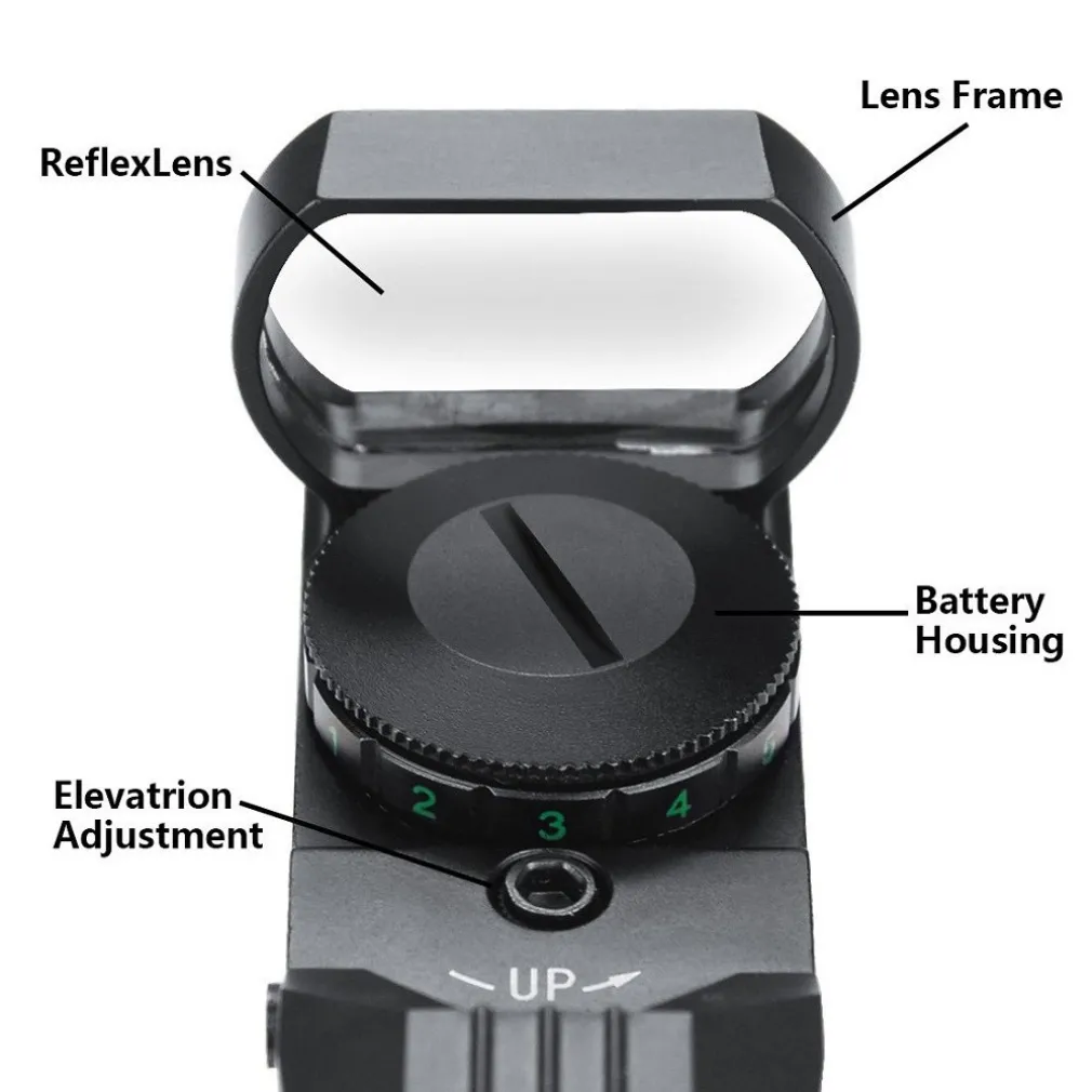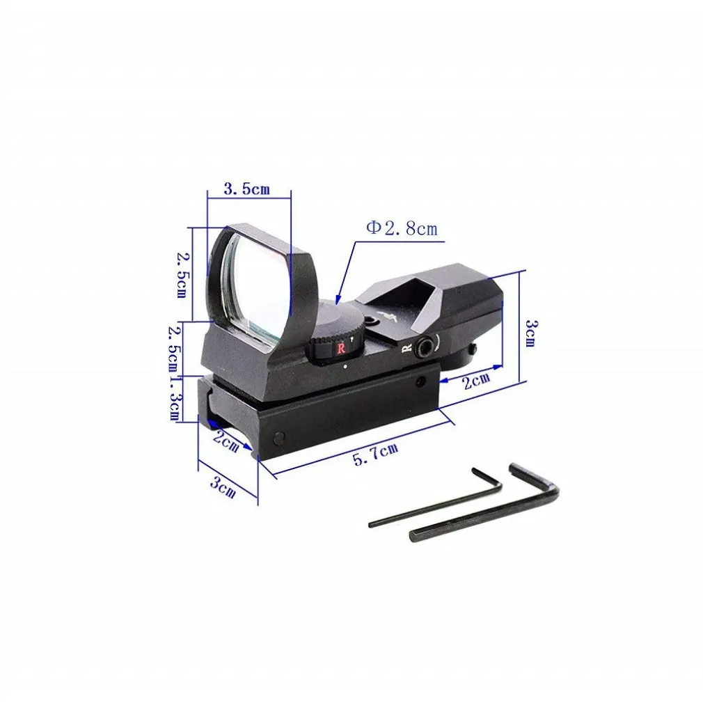 Mirino olografico per fucili carabine con attacco slitta da 22mm a massimo 33mm a sgancio rapido. Robusto e di alta qualità, con corpo interamente in alluminio aeronautico, professionale per uso militare Olografico. Lente da 33mm. Punto di luce rosso o verde a 5 intensità e 4 tipi di mirini intercambiabili.