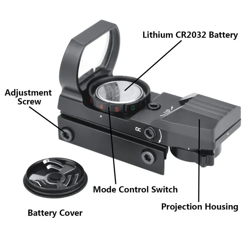 OTTICA MIRINO OLOGRAFICO PUNTO ROSSO/VERDE CON ATTACCO RAPIDO SLITTA 22mm BZ400X