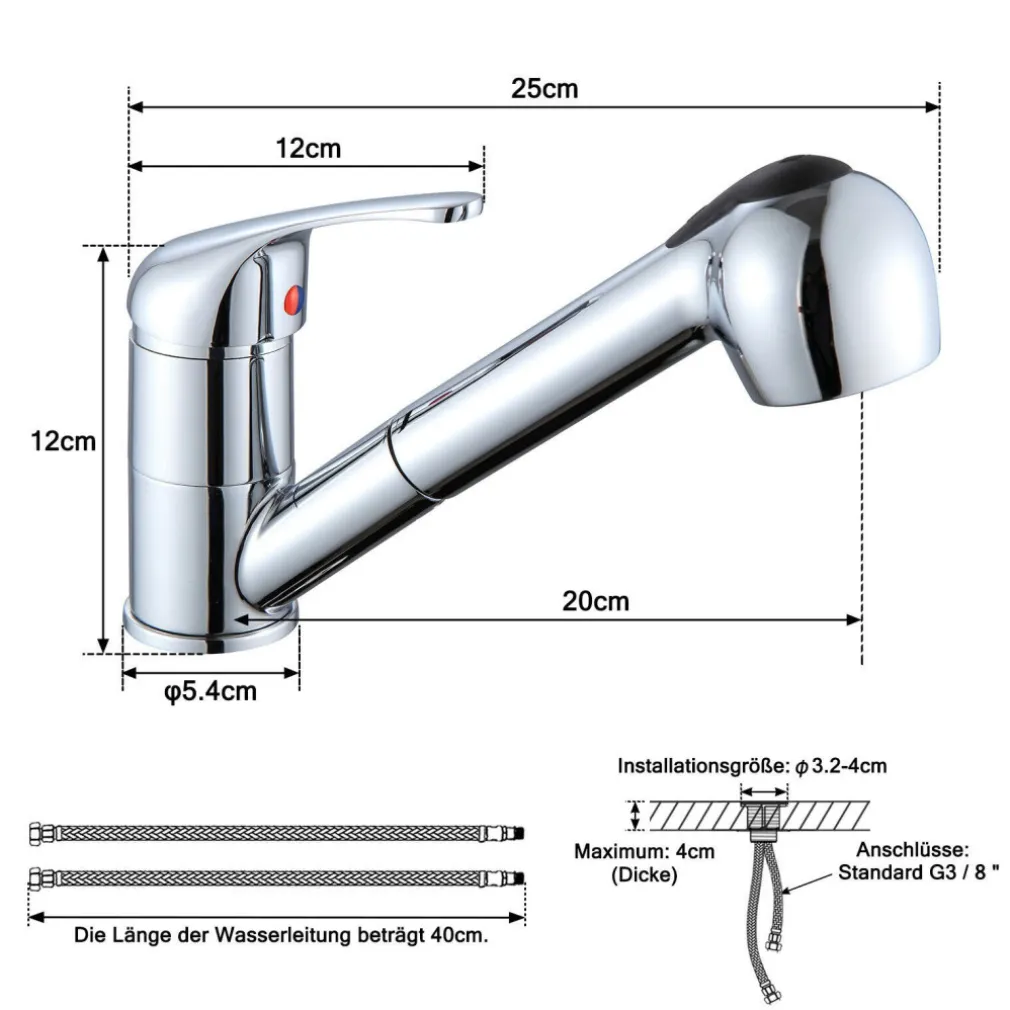 Pratico miscelatore monocomando per cucina lavabo, ideale per la sostituzione del vecchio miscelatore. La fontanella non è altro che una pratica doccetta Estraibile per una lunghezza massima di 1 mt. circa.
