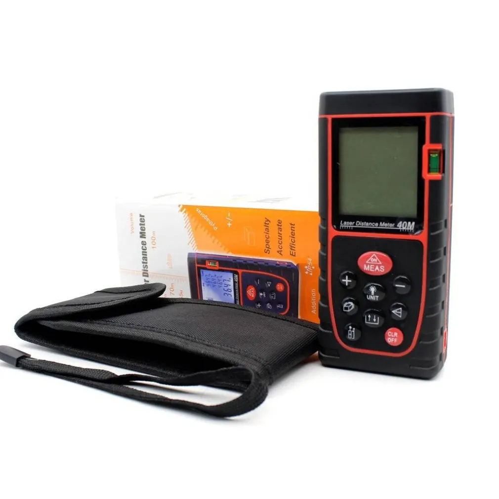 Nuovo strumento di misurazione, il metro digitale laser UT390H è portatile e affidabile nella misurazione, semplice e veloce risultato due volte piú preciso fino a 50 mt circa di distanza con metà dello sforzo. Il prodotto, come sostituto dei tradizionali strumenti di misurazione (scala in acciaio e nastro) può essere ampiamente usato nella costruzione e nella progettazione, soprattutto nelle grandi aree quali camere, appartamenti, edifici, immobili, fabbriche, magazzini, ecc.