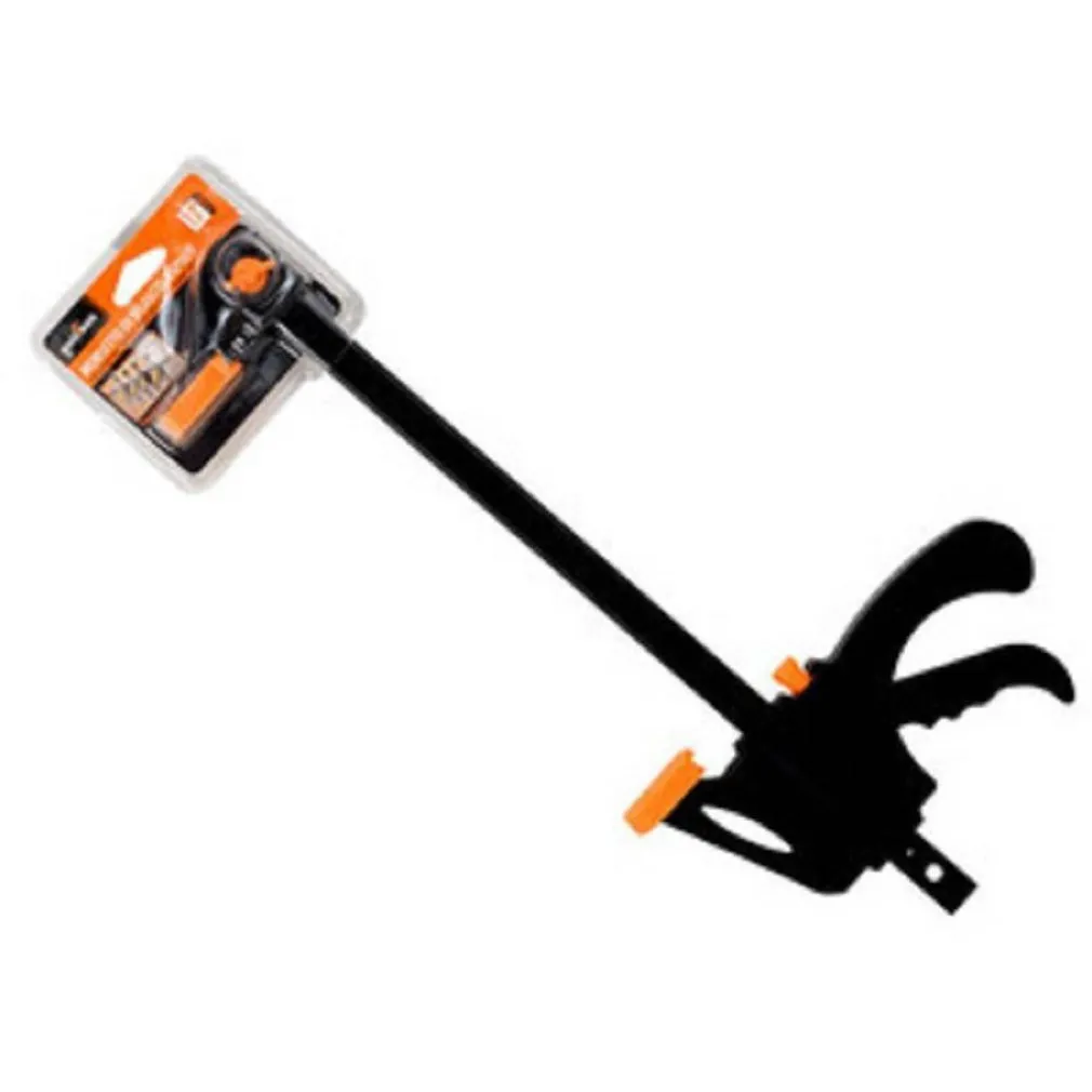 Morsetto a sgancio rapido ideale per tagliare e levigare in modo sicuro. Dotato di pulsante che consente di rilasciare la morsa in modo semplice e veloce. La struttura in acciaio e materiale plastico garantisce la lunga durata dell’utensile e al contempo lo rende versatile e leggero nell’utilizzo. Punti di serraggio rivestiti per non rovinare l’oggetto serrato. Apertura: 250 mm.