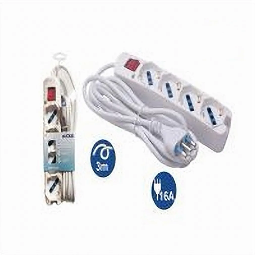 MULTIPRESA 4 USCITE UNIVERSALI CON INTERRUTTORE LUMINOSO SPINA 16A CAVO 3MT 80190N