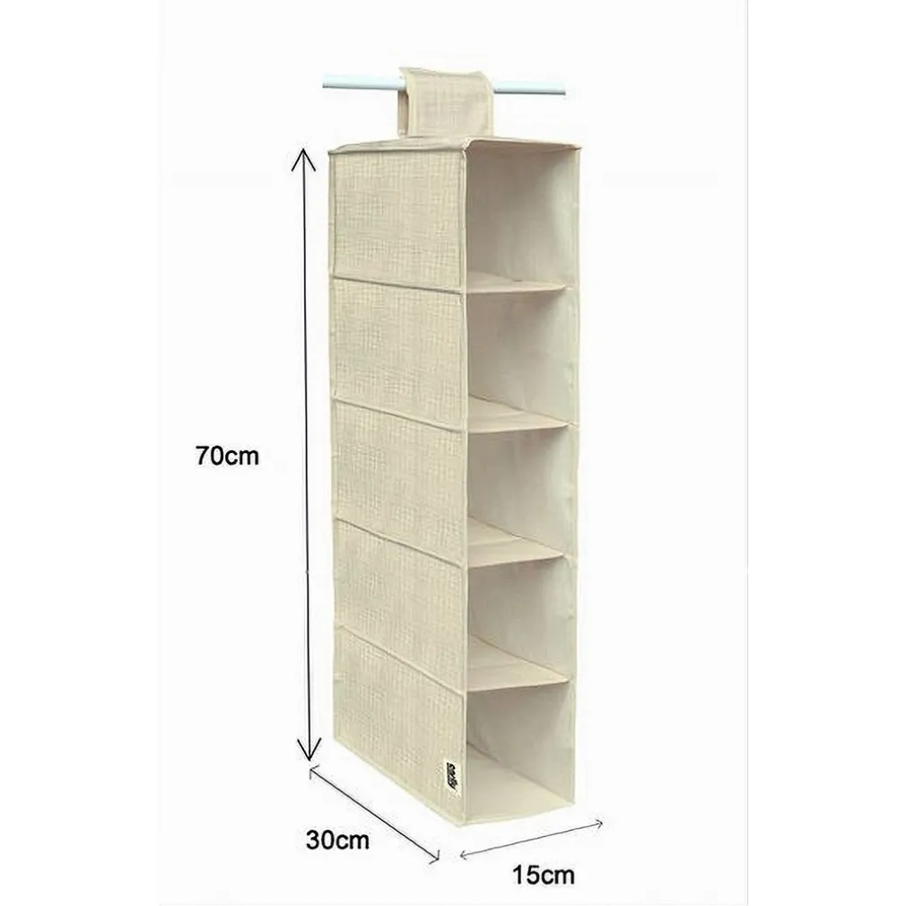 Le dimensioni dell’organizer sono 15 x 30 x 70 cm, con 5 scomparti spaziosi per massimizzare l’ordine nel tuo armadio.