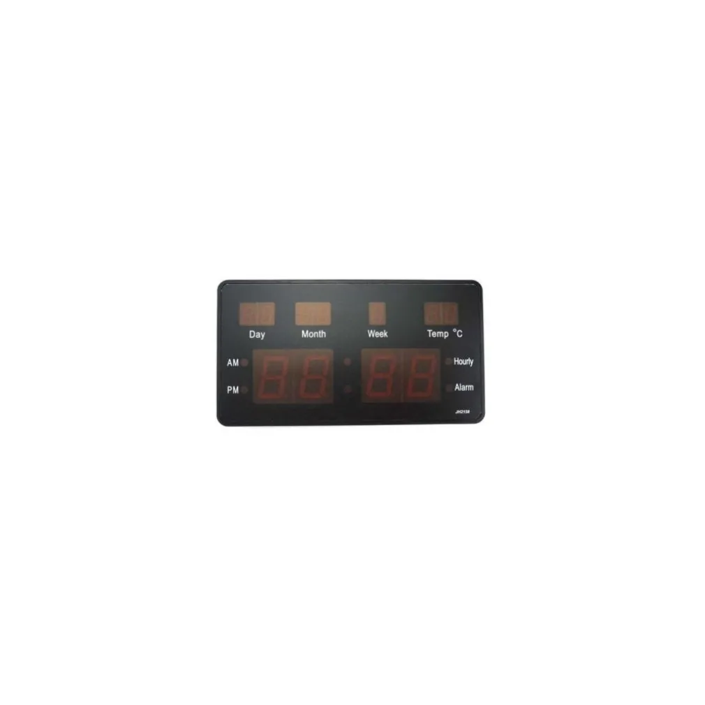 Orologio sveglia digitale a led rossi da tavolo e parete grazie a fori posti sul retro, sul display visualizza orario mese giorno temperatura e numero settimana, oltre a segnalare e rilevare la temperatura della stanza in cui viene istallato.Possibilità di attivare o disattivare la sveglia. L’orario viene visualizzato in formato 24h/12h. Alimentato a corrente elettrica.
