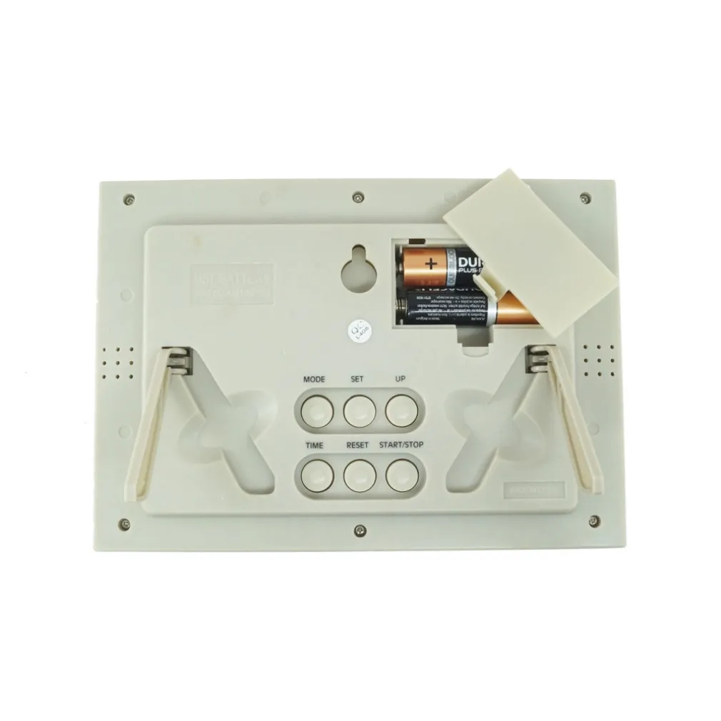 Indica orario, data, temperatura, dotato di funzione sveglia e funzione cronometro e conto alla rovescia attivabili dal pannello posteriore dove troverete tutti i pulsanti necessari per tutte le sue funzioni.
