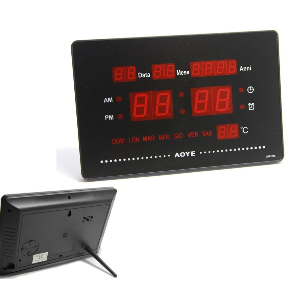 Nuovissimo orologio a led digitale con molteplici funzioni come: orario, datario, temperatura, allarmi sveglia, con la possibilità di programmare fino a 8 sveglie.